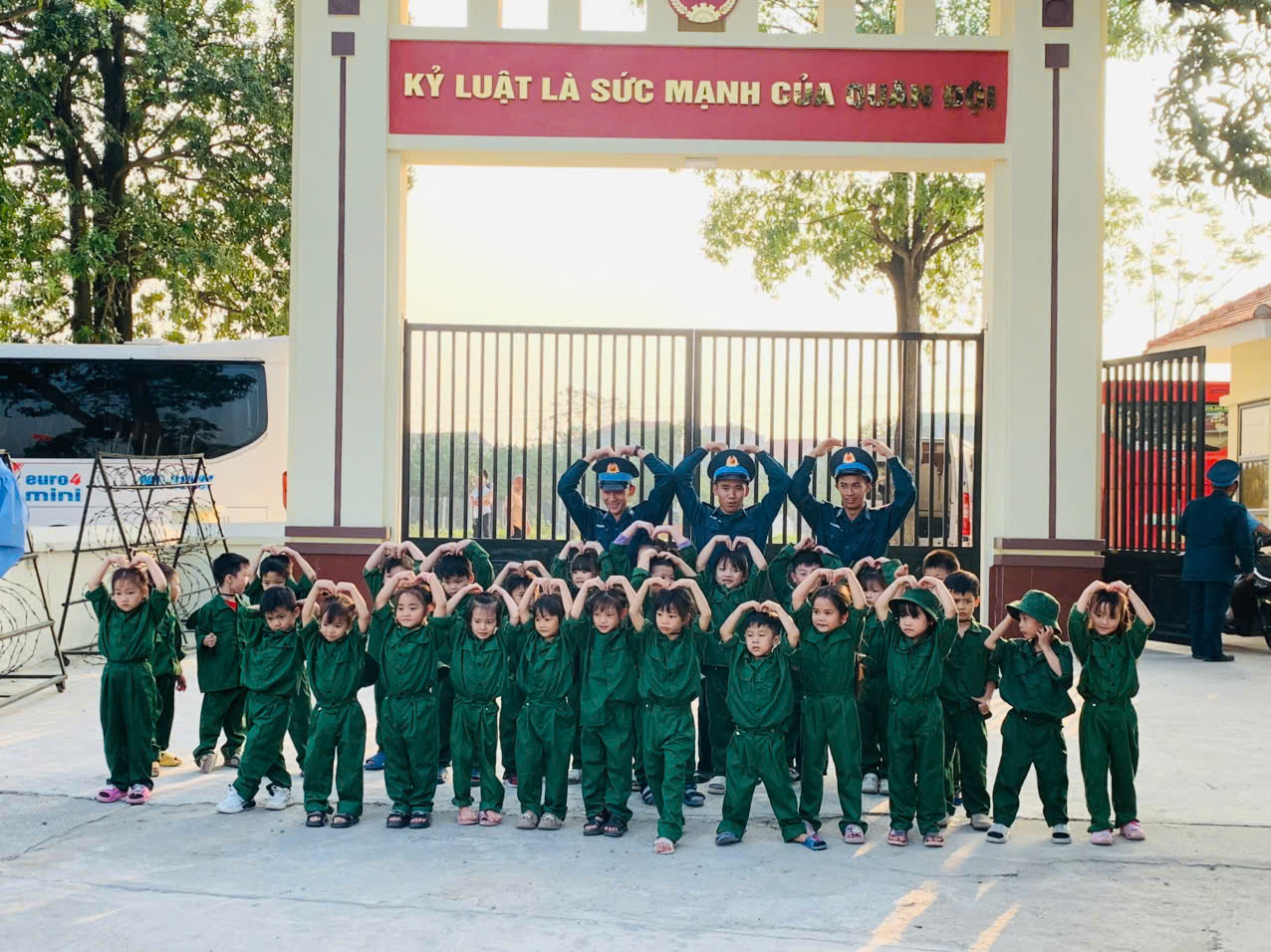 🤝 Bên cạnh đó, các bé còn được giao lưu, trò chuyện 💬 với các chú bộ đội 💂♂️🎖️, lắng nghe chia sẻ về công việc, nhiệm vụ bảo vệ Tổ quốc 🇻🇳🛡️, chụp ảnh lưu niệm 📸 và tham gia một số hoạt động trải nghiệm phù hợp với lứa tuổi 👧👦. Hoạt động diễn ra trong không khí thân thiện 🤍, vui tươi 🎶, an toàn tuyệt đối ✅, đảm bảo đúng mục tiêu giáo dục mầm non.