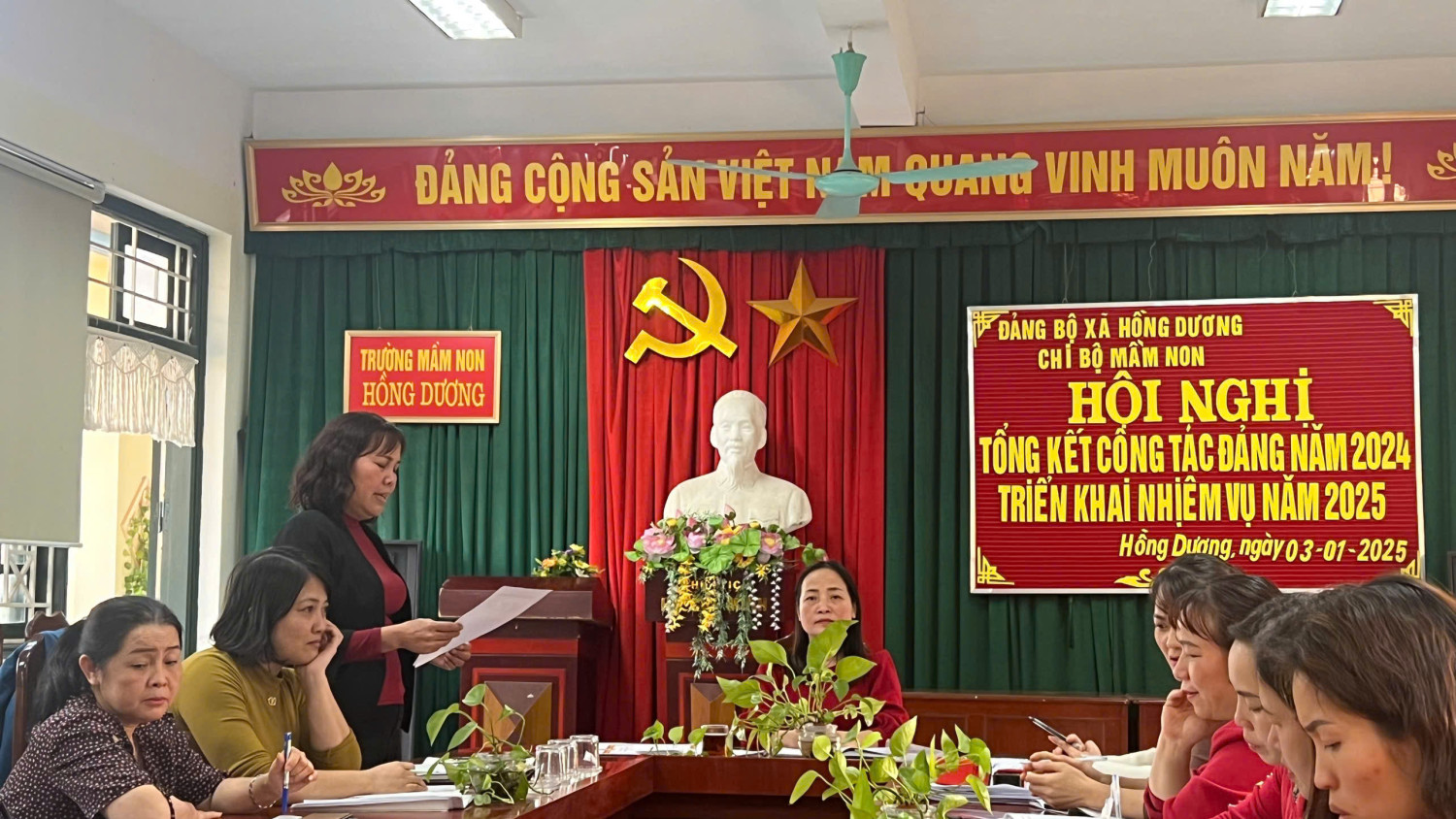 📎 Việc đánh giá xếp loại cuối năm 100% đảng viên tham gia đánh giá: Chi bộ hoàn thành tốt nhiệm vụ; 7 đảng viên hoàn thành xuất sắc và 33 hoàn thành tốt nhiệm vụ; 03 Đảng viên được đề nghị Đảng ủy xã Hồng Dương khen thưởng hoàn thành xuất sắc nhiệm vụ năm 2024, 04 Đảng viên được đề nghị chi bộ khen thưởng năm 2024.