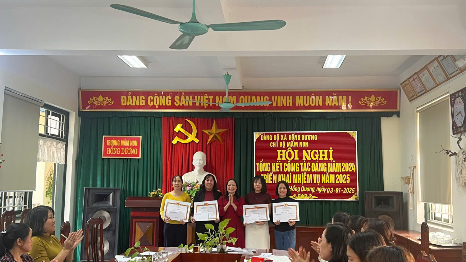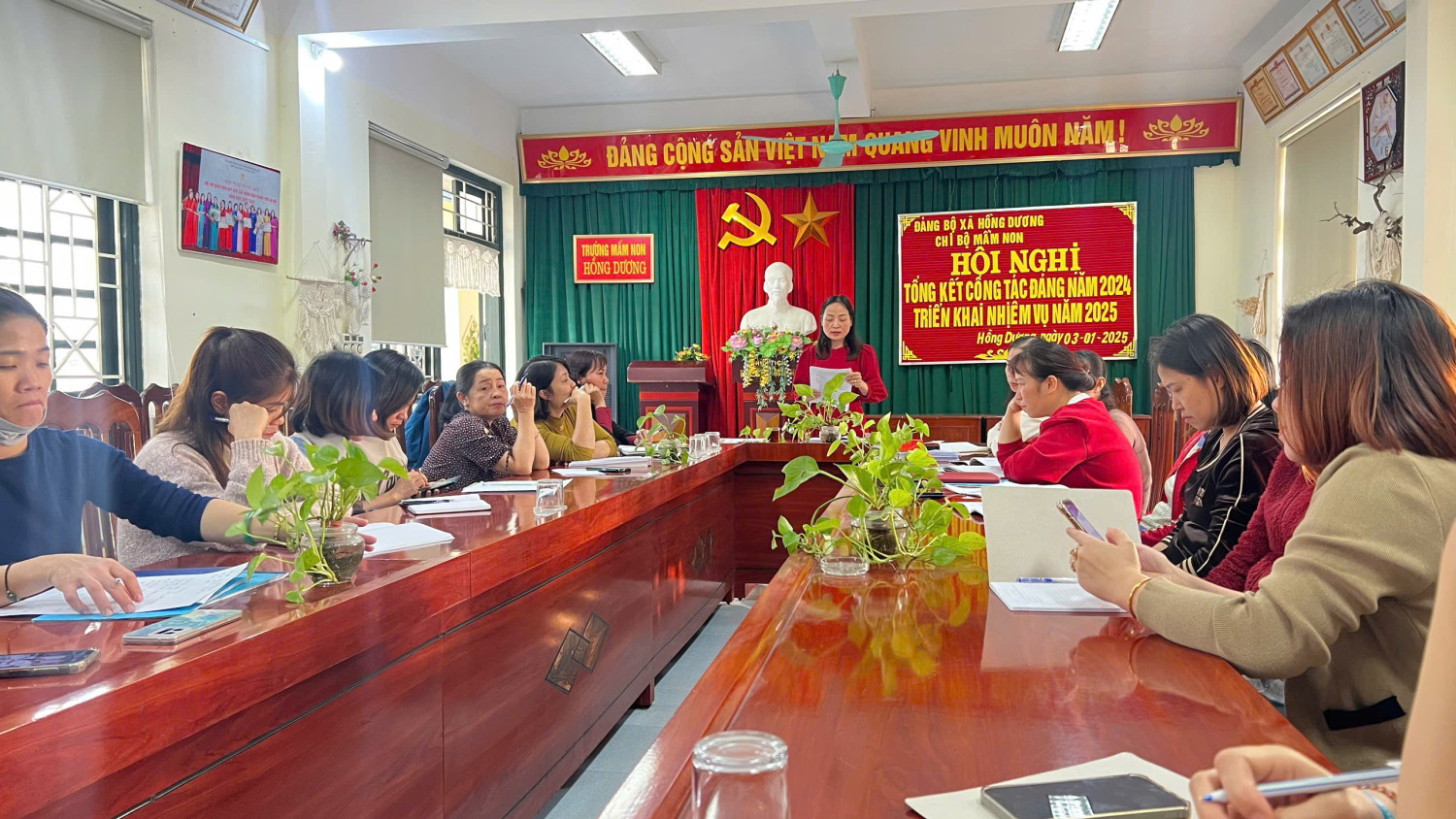 ☘ Tham dự Hội nghị tổng kết công tác đảng năm 2024 và triển khai nhiệm vụ năm 2025, có các đồng chí trong Ban chi ủy cùng toàn thể đảng viên trong chi bộ mầm non.