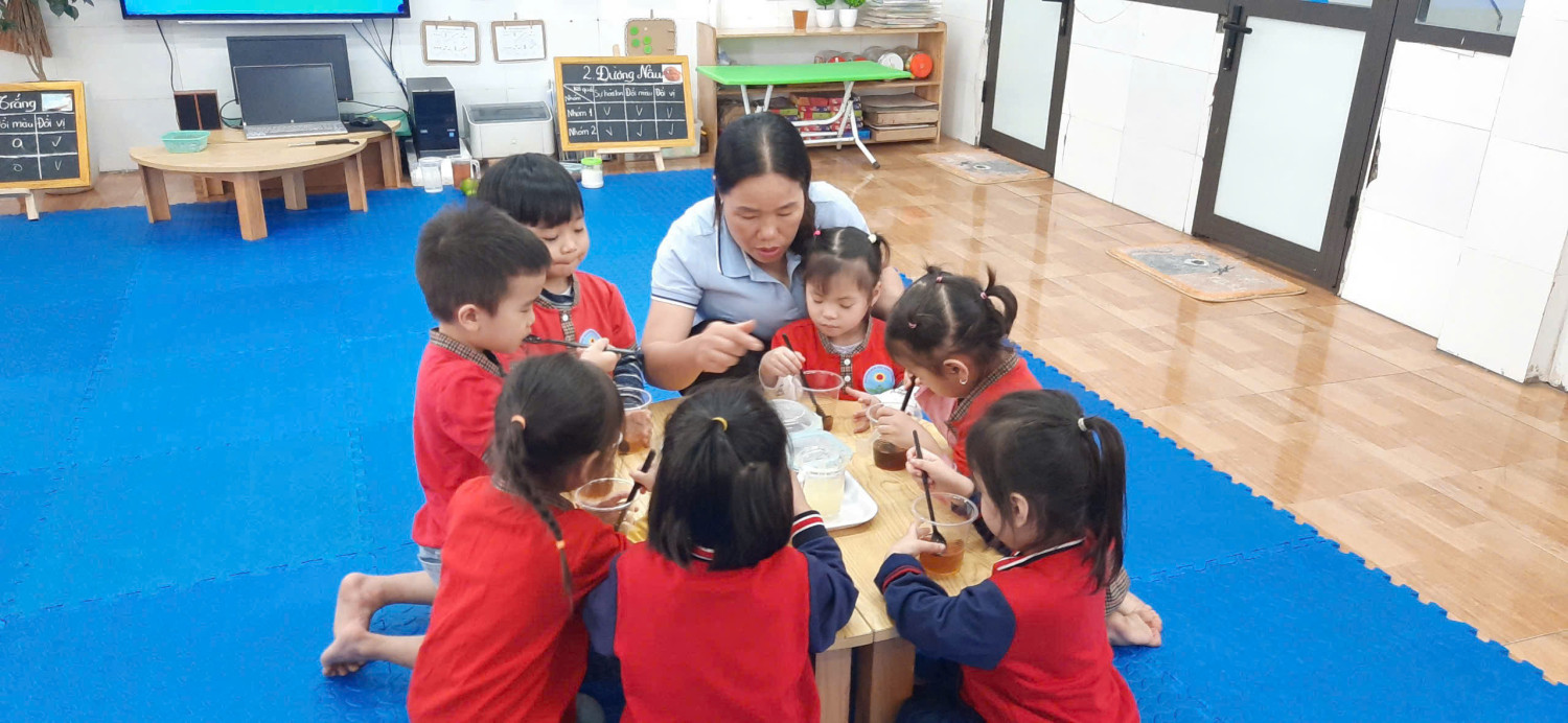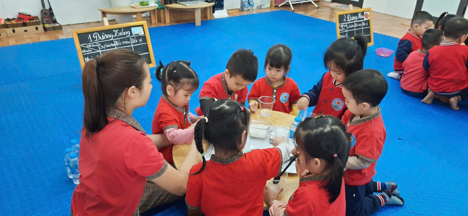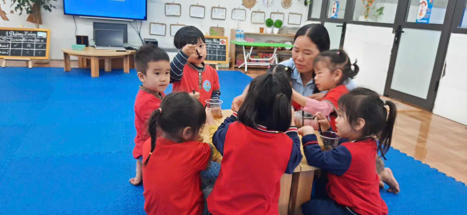🌿 Các bạn nhỏ đáng yêu lớp C3 đã được cô giáo hướng dẫn làm Thí nghiệm hoà tan đường trong nước.