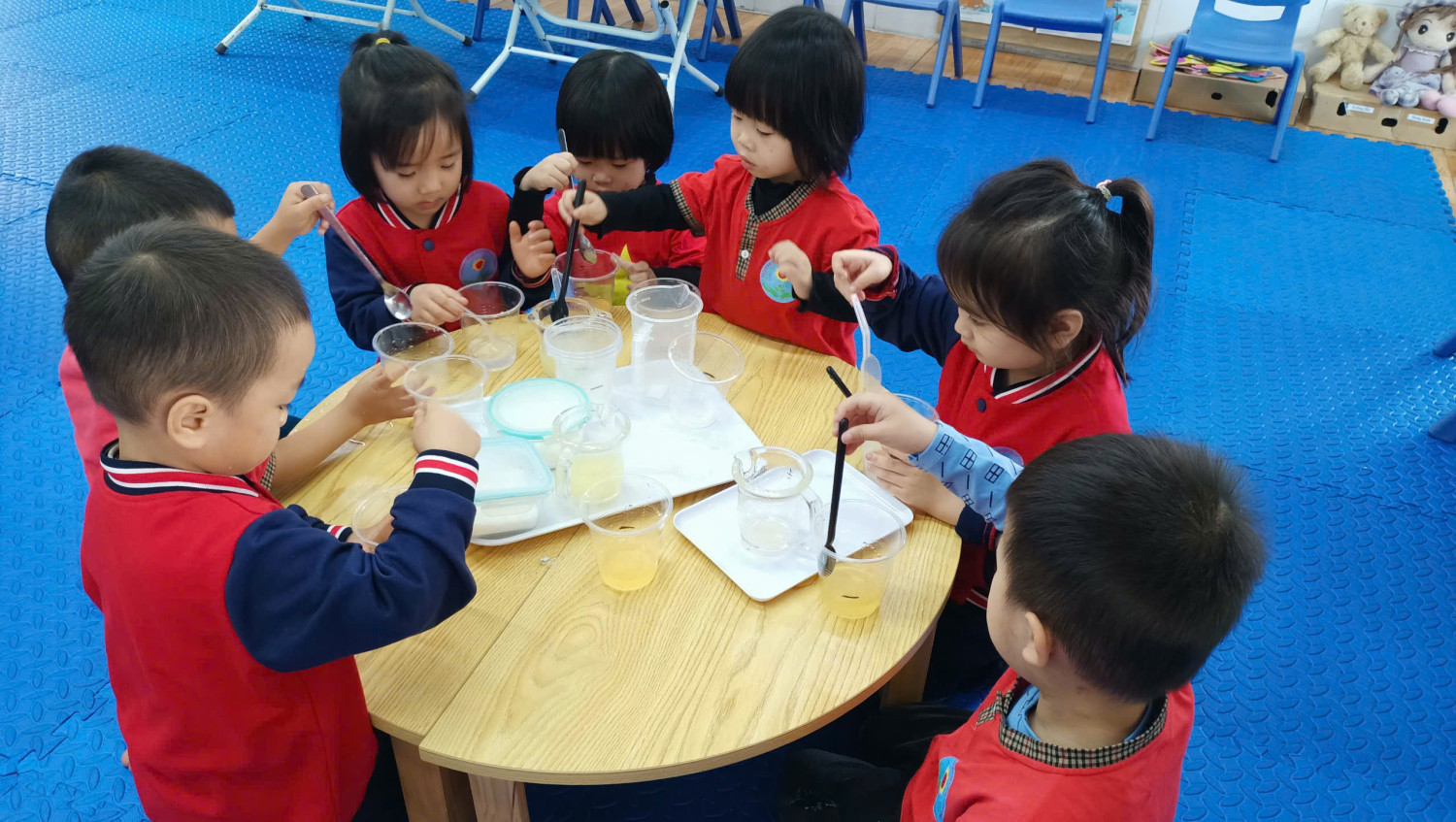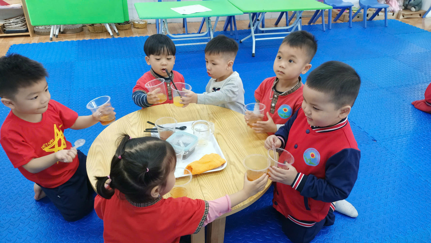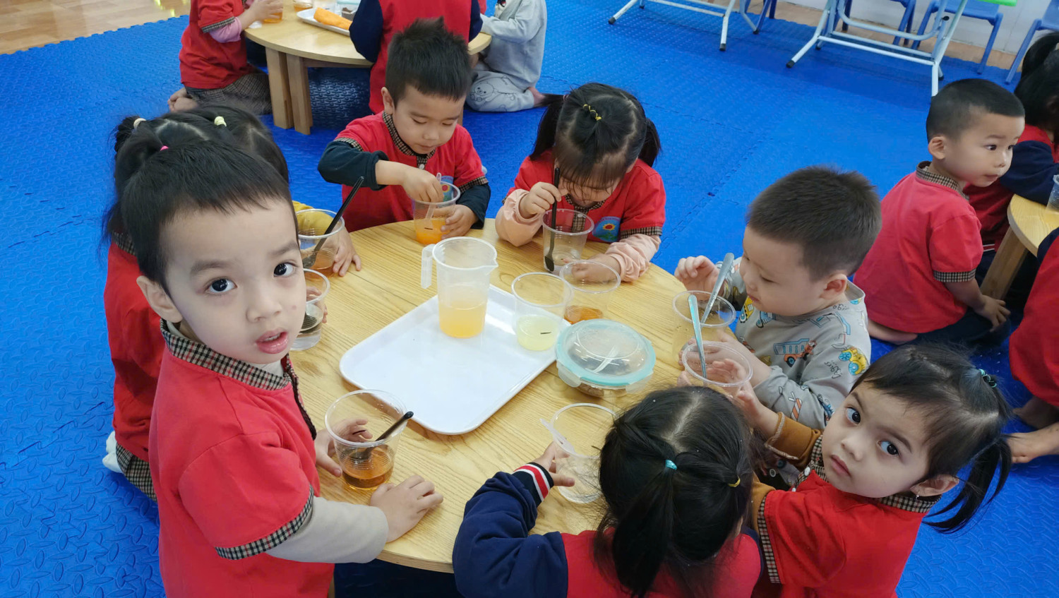 🌿 Các bạn nhỏ đáng yêu lớp C3 đã được cô giáo hướng dẫn làm Thí nghiệm hoà tan đường trong nước.