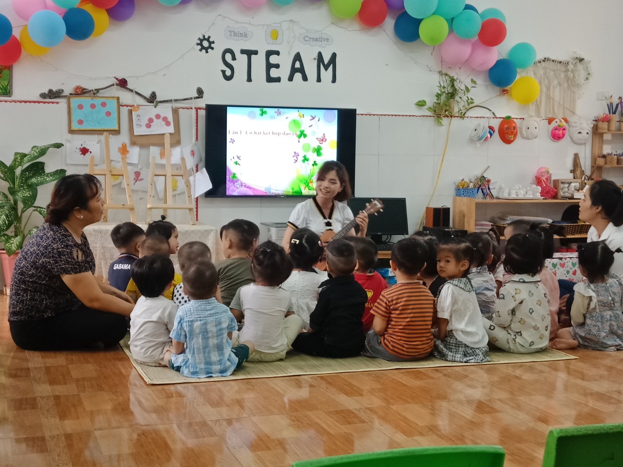 Hoạt động khám phá quả trứng lớp B1 - Cô Huế cùng GV lớp thực hiện
