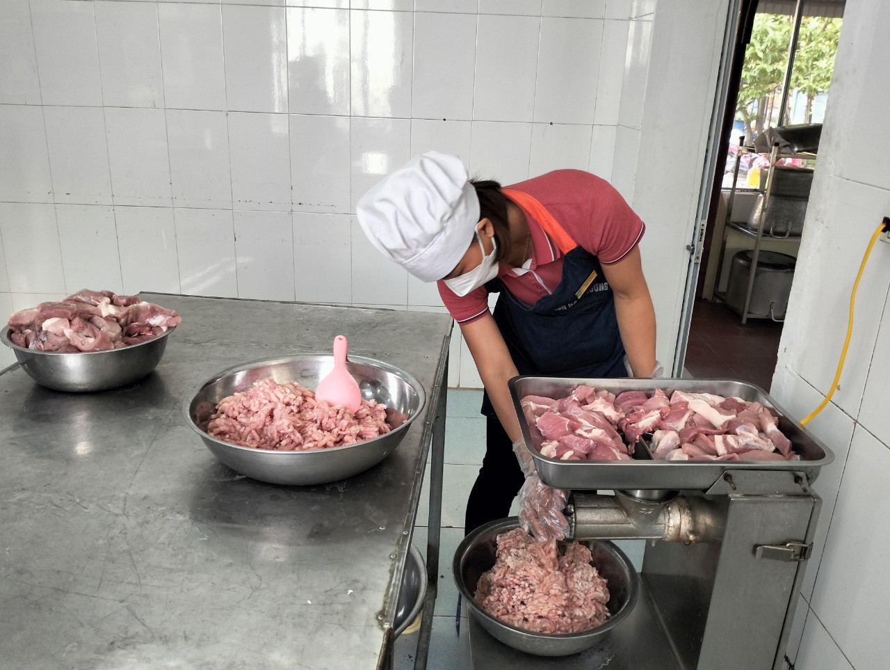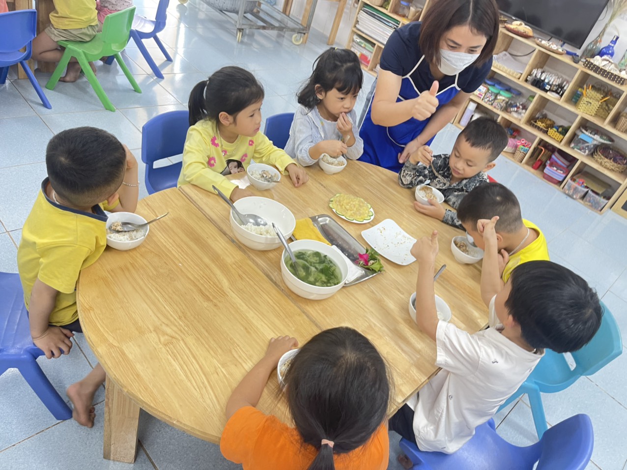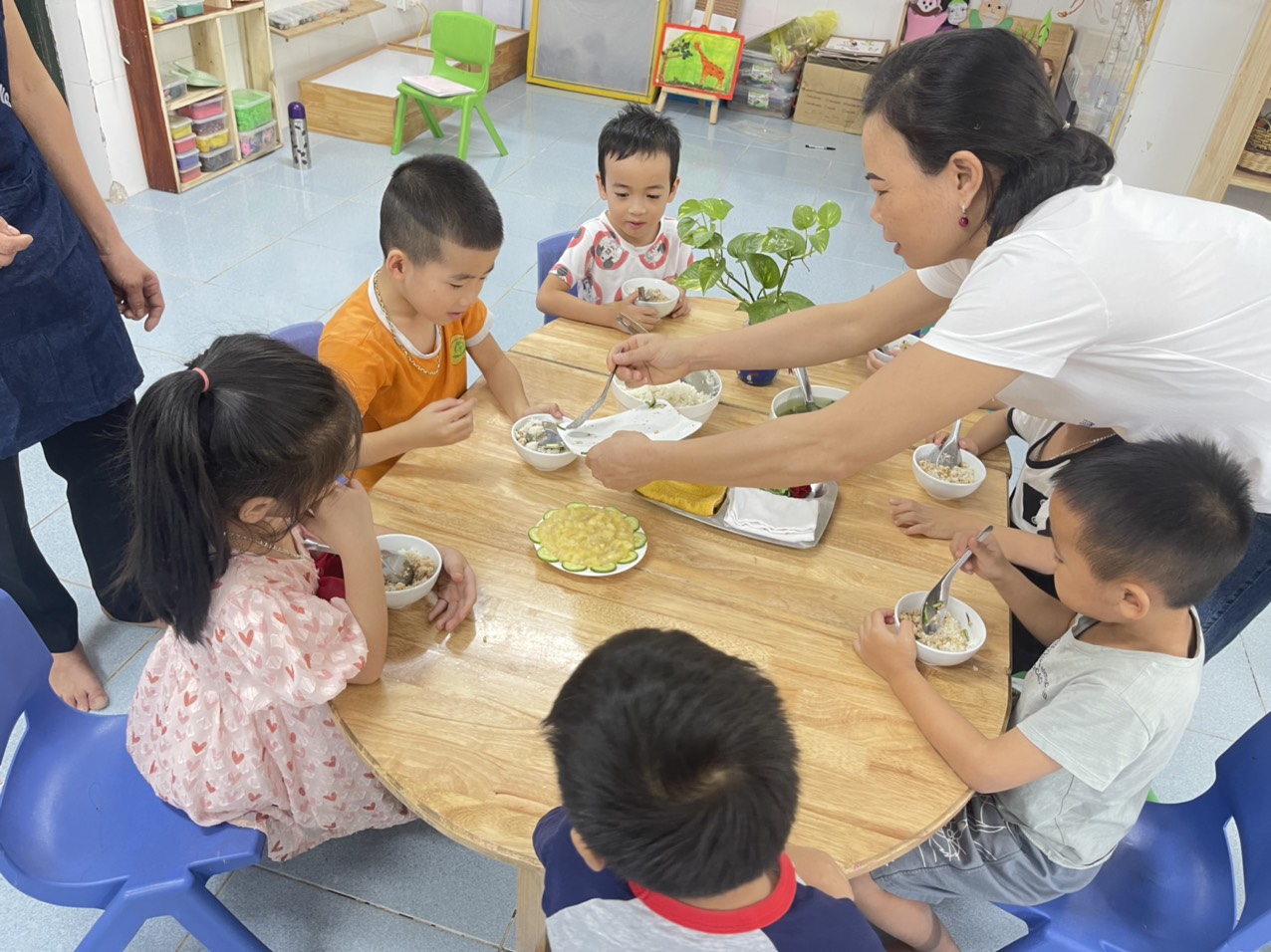 Cuộc thi nhân viên nuôi dưỡng giỏi cấp trường.Các món ăn cơm tẻ thơm, thịt tôm rim lạc vừng, khoai tây xào thịt, canh bắp cải rau ngót nấu thịt do 3 cô nhân viên cô Đỗ Thị Hồng Thắm, Nguyễn Thị Thanh Loan và Phạm Thị Thùy thực hiện