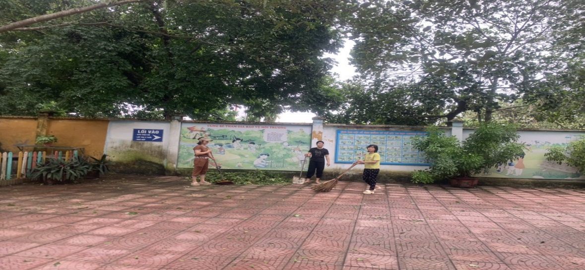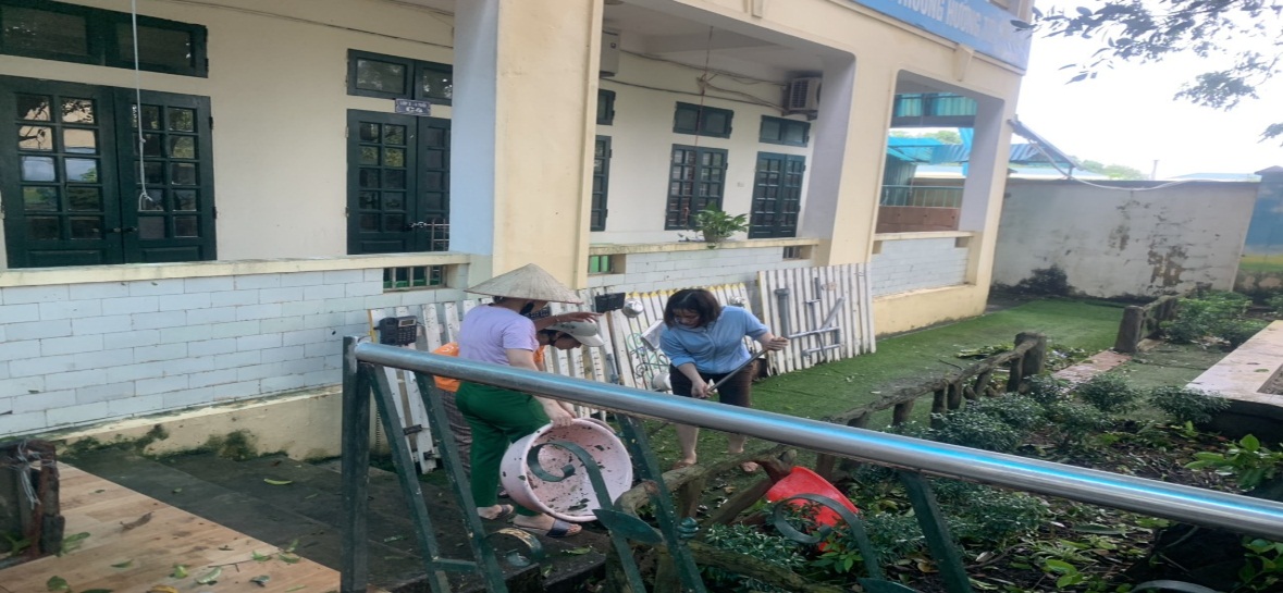 🏡Trường mầm non Hồng Dương gấp rút khắc phục hậu quả do bão số 3.