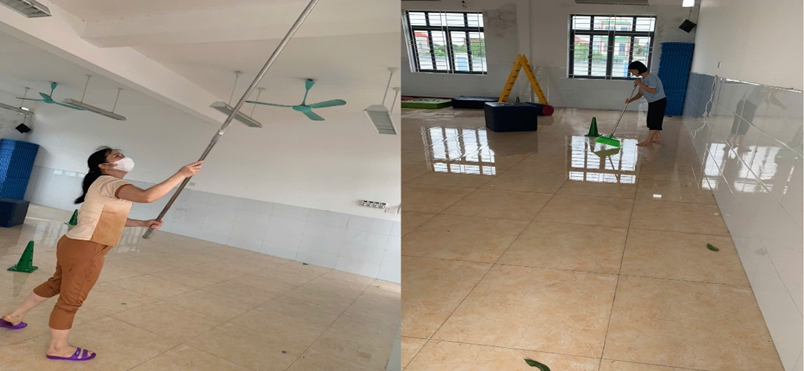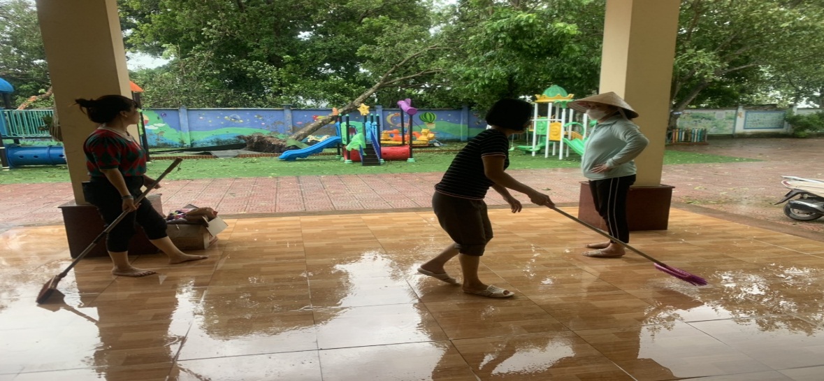 Một số hình ảnh về Cán bộ, giáo viên và nhân viên Trường Mầm non Hồng Dương khắc phục hậu quả sau cơn bão số 3: