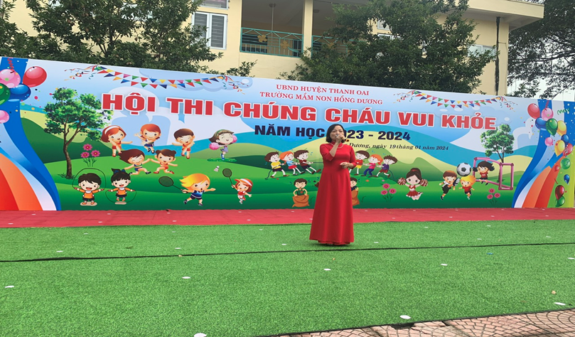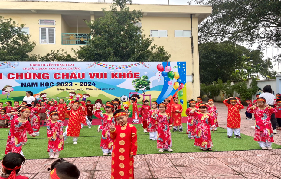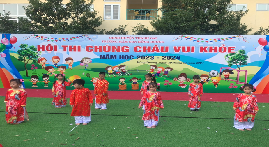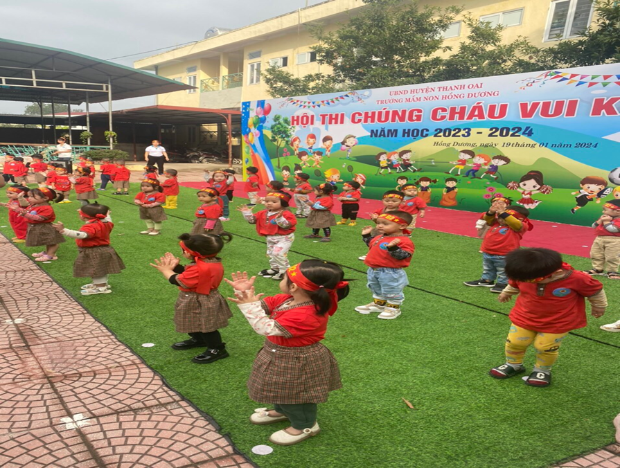 Thực hiện kế hoạch năm học 2023-2024, hôm nay ngày 19/1/2024, nhà trường phối hợp với Ban đại diện CMHS tổ chức Hội thi "Chúng cháu vui khoẻ" cho các con. Về dự với hội thi, có bà Thanh Hoa trưởng ban đại diện CMHS, bà Nguyễn Thị Tươi, bà Nguyễn Thị Huyền trong Ban dại diện PH trường cùng các ông bà đại diện phụ huynh lớp. Sự tham gia hào hứng của 603 trẻ trên 22 nhóm lớp, điều đặc biệt là có 4 nhóm nhà trẻ, đây là độ tuổi nhỏ nhất trong nhà trường nhưng các con rất cố gắng để phối hợp cùng bạn trong đồng đội của mình.