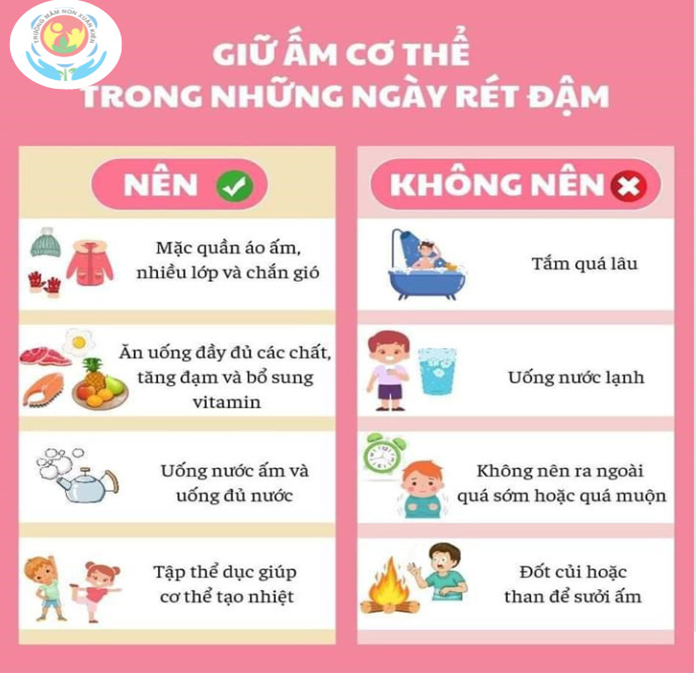 👉Trang bị đủ ấm cho bé khi ở nhà và khi đi ra ngoài, không ra ngoài khi không cần thiết.