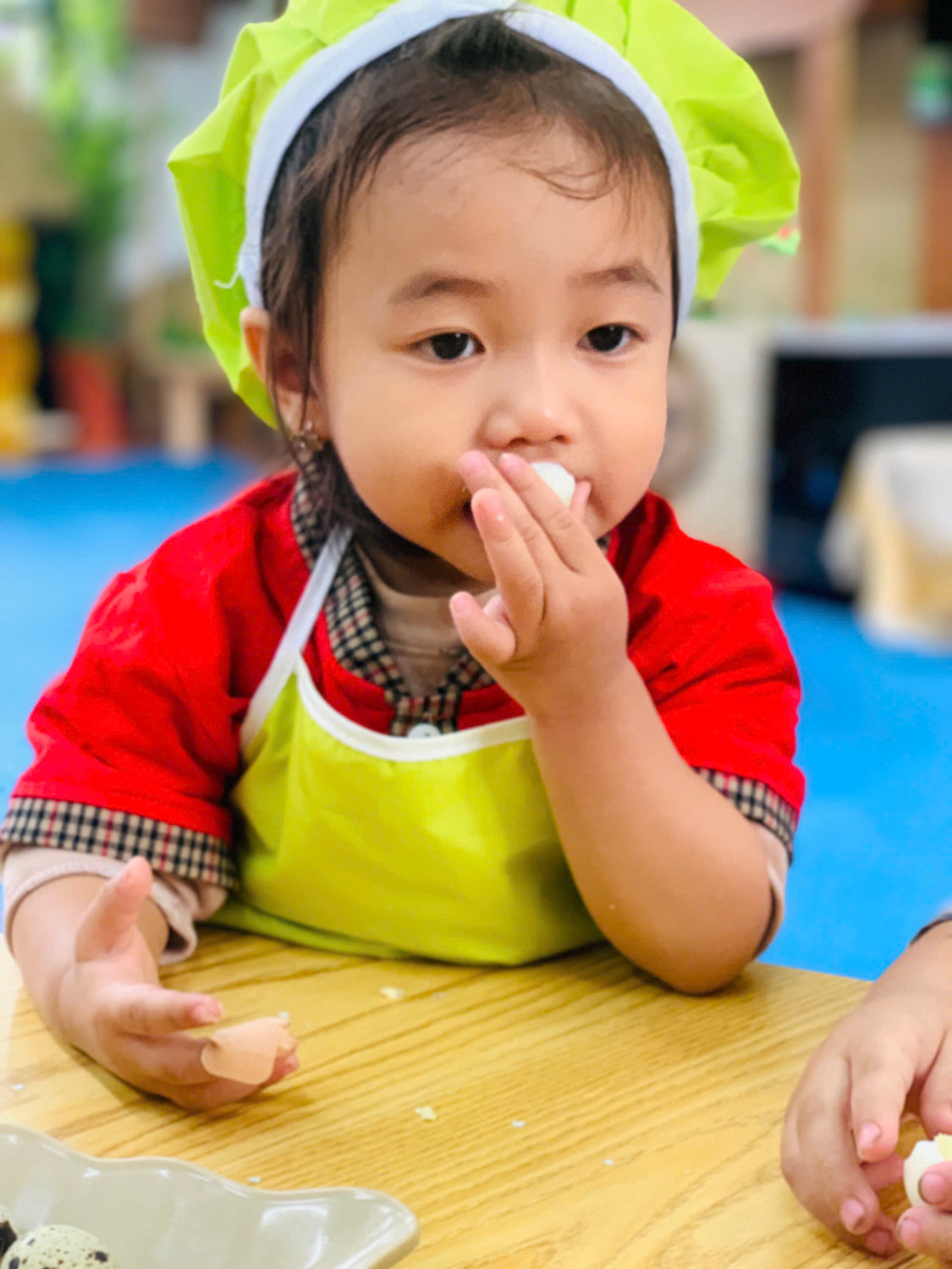 🎈 Lợi ích từ hoạt động bóc vỏ trứng cút: 🌻 Phát triển kỹ năng vận động tinh: Khi bóc từng lớp vỏ mỏng của quả trứng, các bé rèn luyện sự khéo léo và linh hoạt của đôi bàn tay, giúp tăng cường khả năng cầm nắm và thao tác. 🌻 Tăng cường khả năng tập trung: Để bóc được quả trứng hoàn chỉnh mà không làm vỡ lòng trắng, các bé cần tập trung cao độ và thực hành sự tỉ mỉ. 🌻 Khơi gợi tính kiên nhẫn: Hoạt động này dạy trẻ biết kiên nhẫn và tỉ mỉ để hoàn thành công việc một cách tốt nhất. 🌻 Tạo niềm vui học hỏi: Các bé được khích lệ thông qua việc tự tay hoàn thành nhiệm vụ, từ đó xây dựng sự tự tin và tinh thần ham học hỏi. Và đặc biệt các con có thể giúp Ba mẹ trong việc nội trợ rồi đấy! 💖 Không chỉ học cách bóc vỏ, các bé còn thích thú khi được thưởng thức những quả trứng mình tự bóc. Đó chính là niềm vui trọn vẹn khi nhìn thấy thành quả từ chính sự cố gắng của mình.