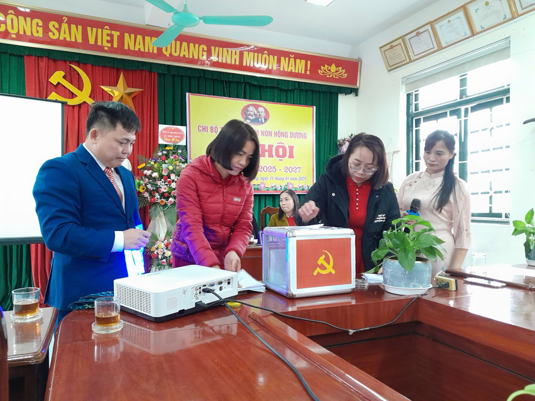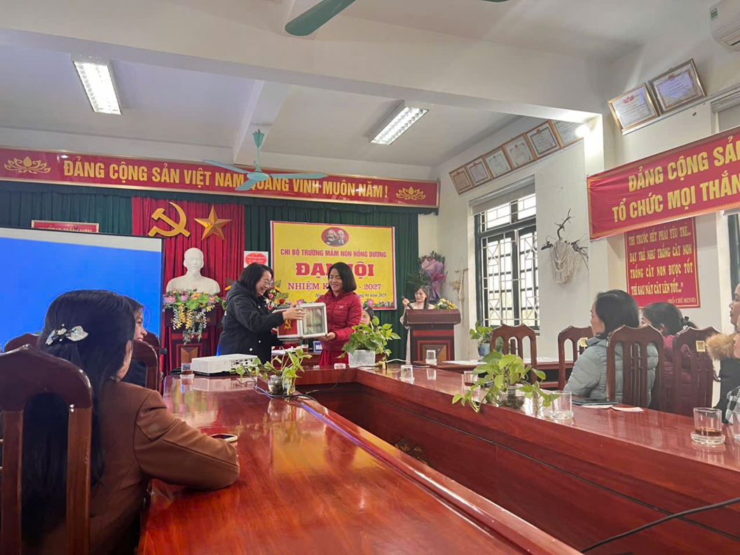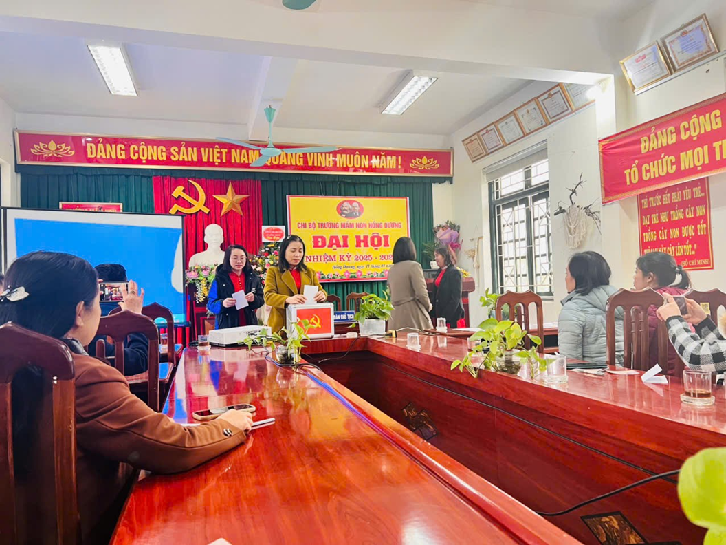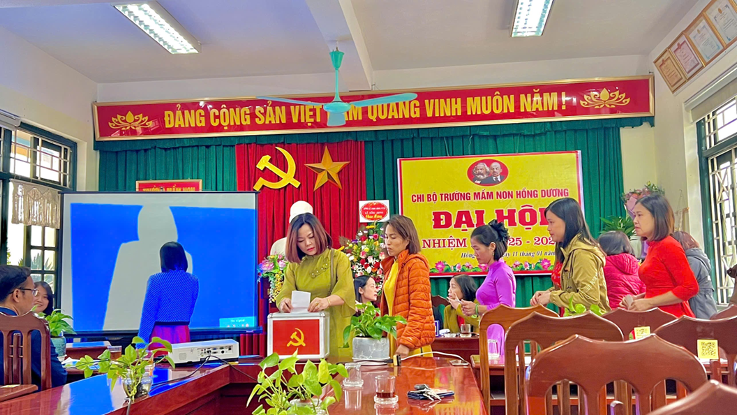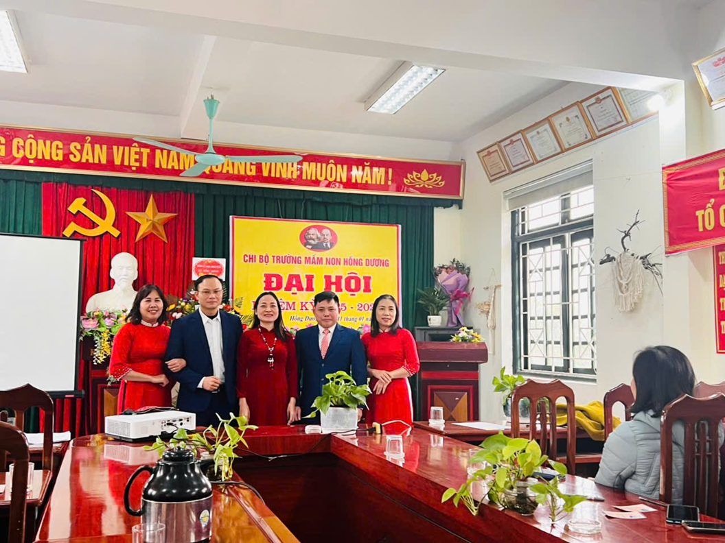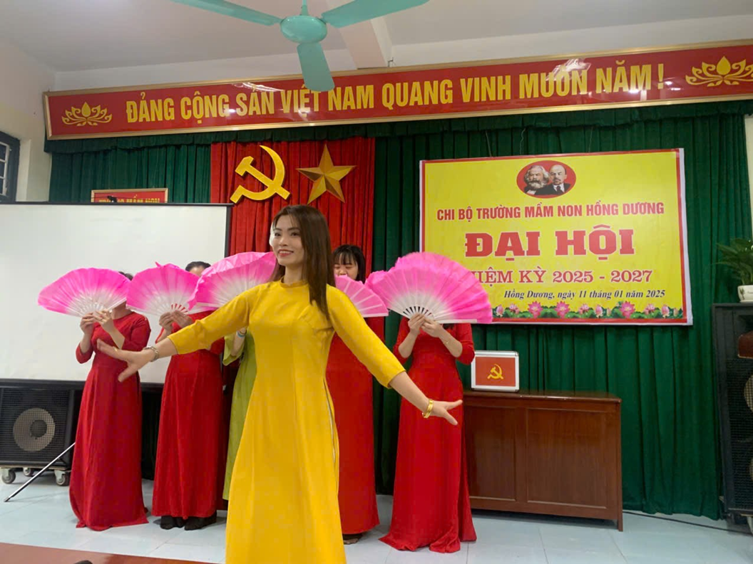 🌹🌹Về dự và chỉ đạo Đại hội, Chi bộ MN Hồng Dương vinh dự được đón tiếp Đ/c Đỗ Lương Thực - Phó Bí thư Thường trực Đảng ủy xã Hồng Dương; Đ/c Đỗ Xuân Minh- Phó chủ tịch hội đồng xã Hồng Dương; Các đ/c là đại diện các đoàn thể của nhà trường và toàn thể Đảng viên, quần chúng ưu tú của chi bộ. 🌹🌹Chương trình Đại hội diễn ra theo đúng quy trình: 🌹🌹Đại hội đã tiến hành báo cáo kết quả thực hiện nghị quyết Đại hội Chi bộ nhiệm kỳ 2022-2025, kiểm điểm sự lãnh đạo của chi ủy nhiệm kỳ 2022- 2025, phương hướng nhiệm vụ nhiệm kỳ 2025-2027. 🌹🌹Đại hội cũng đã được nghe 02 bản tham luận và nghe những lời phát biểu chỉ đạo của các đc lãnh đạo Đảng ủy xã Hồng Dương. 🌹🌹Đại hội đã tiến hành bầu Ban chi uỷ, Bí thư, Phó Bí thư và đại biểu dự Đại hội Đảng bộ xã Hồng Dương nhiệm kỳ 2025-2030 🎉🎉🎉Đại hội Chi bộ trường MN Hồng Dương đã diễn ra thành công tốt đẹp. Chi bộ nhà trường xin hứa sẽ luôn gương mẫu đi đầu, thực hiện thắng lợi Nghị quyết Đại hội, đưa Chi bộ trường MN Hồng Dương phát triển ngày càng vững mạnh.🌸🌸