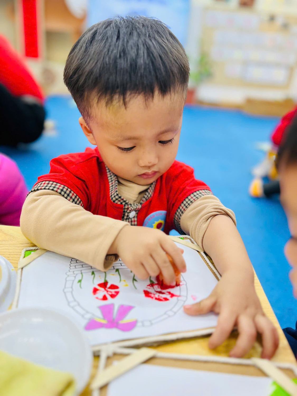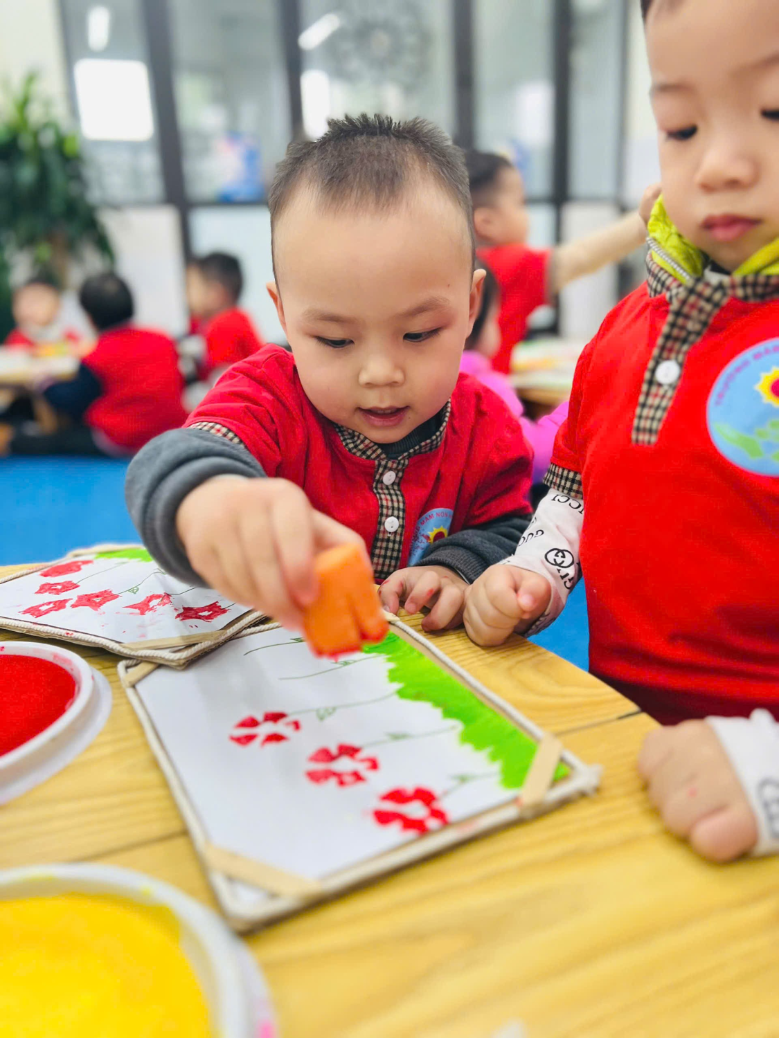 🌼🌼Hoạt động đã khiến trẻ rất thích thú và hào hứng tham gia, hoạt động này giúp trẻ củng cố kỹ năng chấm màu, in, sử dụng các màu sắc khác nhau để tạo thành nhiều bông hoa; phát triển cảm xúc thẩm mĩ, tính nhanh nhẹn, sự khéo léo sáng tạo cho trẻ... ☘️ Qua hoạt động này giúp các bé: 🌈 Rèn luyện Kỹ năng in hoa từ các khuôn rau củ quả. 🌈 Củng cố kỹ năng chấm màu và in màu. 🌈 Bé hứng thú in và giữ gìn sản phẩm của mình. 🏡 Ở nhà, bố mẹ cũng có thể tận dụng những loại rau củ sau khi chế biến thức ăn như: Cà rốt, su su, cuống cải sen, vỏ trái cây... để bé tạo hình những bông hoa mà trẻ thích và có những phút giây hoạt động thú vị cùng bé. ❤️ Các bé rất hứng thú lựa chọn màu sắc sáng tạo ra những bức tranh của riêng mình. Mời bố mẹ cùng xem lại những hoạt động đáng yêu của các bé nhé!