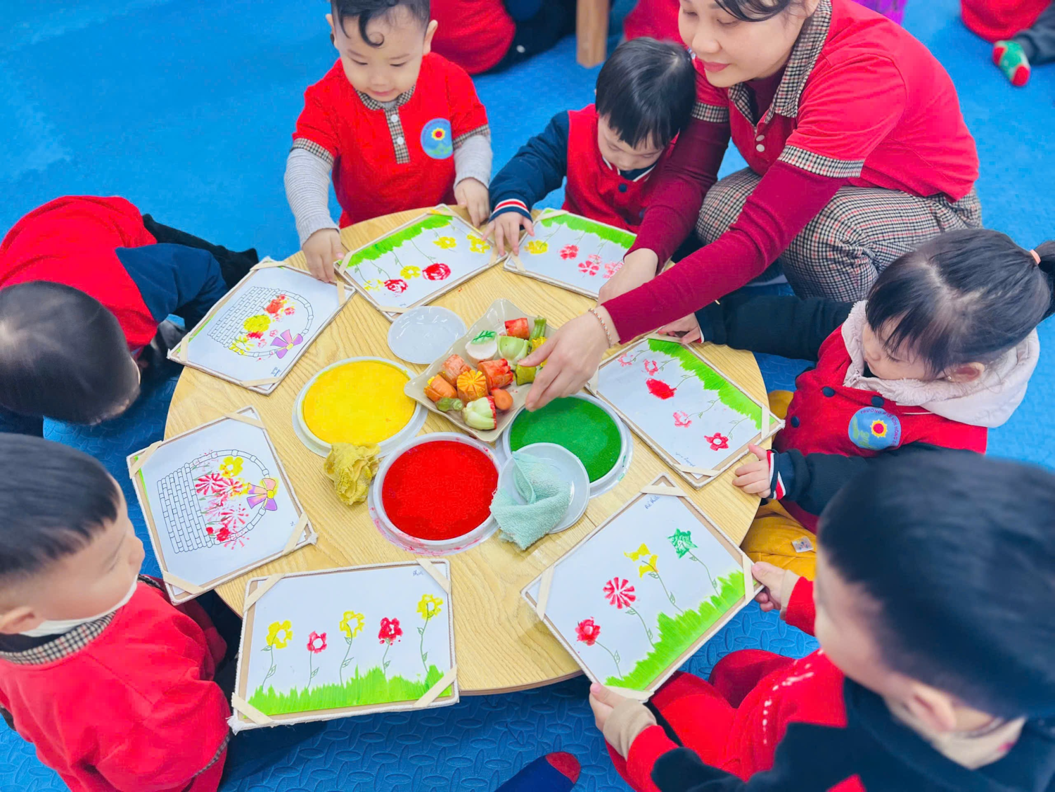 ✍️✍️Hoạt động tạo hình “In hình bông hoa🌺🌹💐 từ các loại rau củ quả ”
