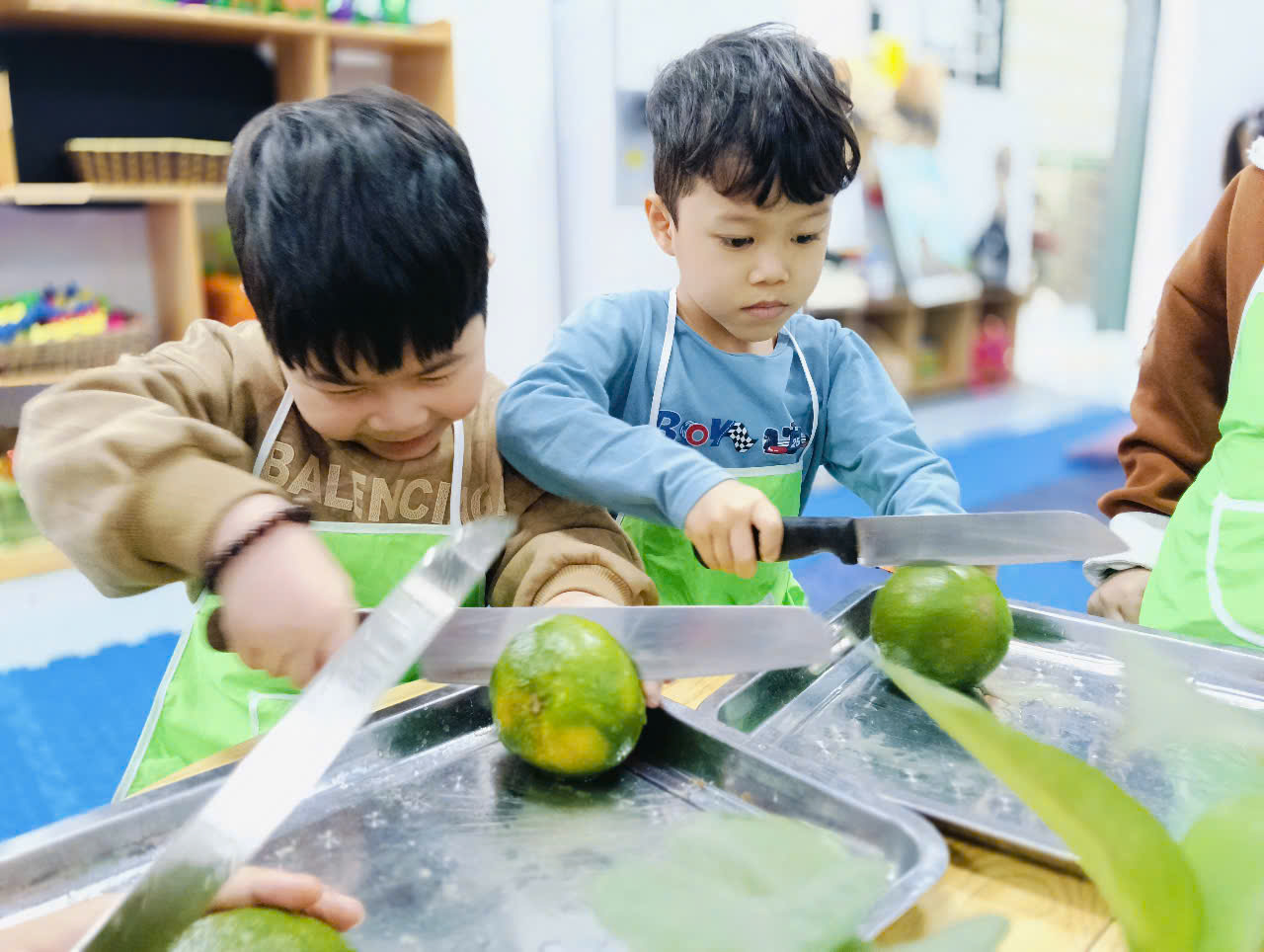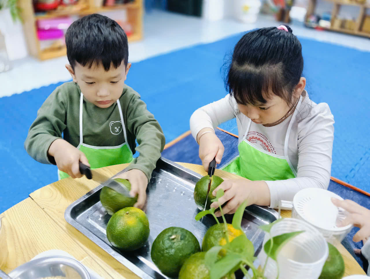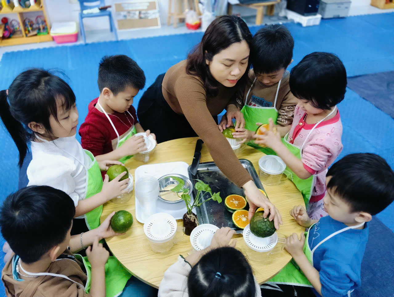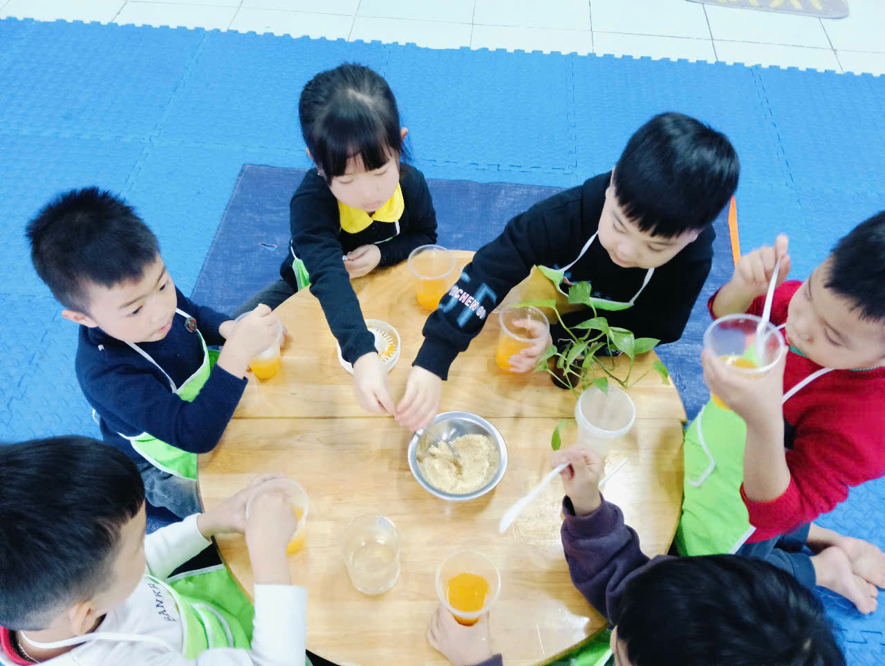 🌻 Trẻ được cô hướng dẫn cụ thể từng kỹ năng cầm, xoay để vắt cam sao cho ra hết nước trong miếng cam và cùng thưởng thức cốc nước cam thơm ngon bổ dưỡng.