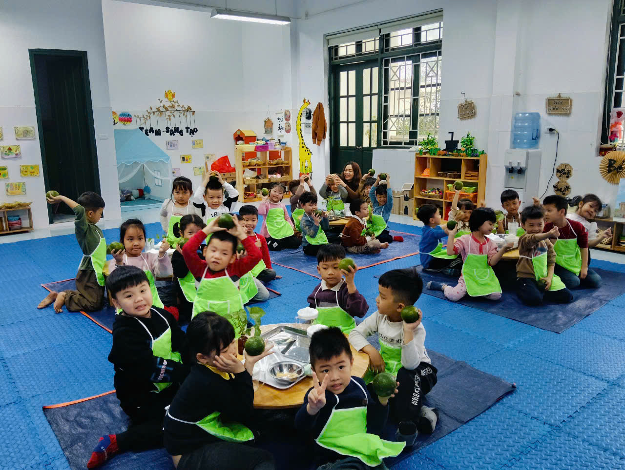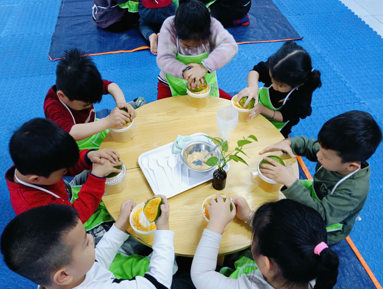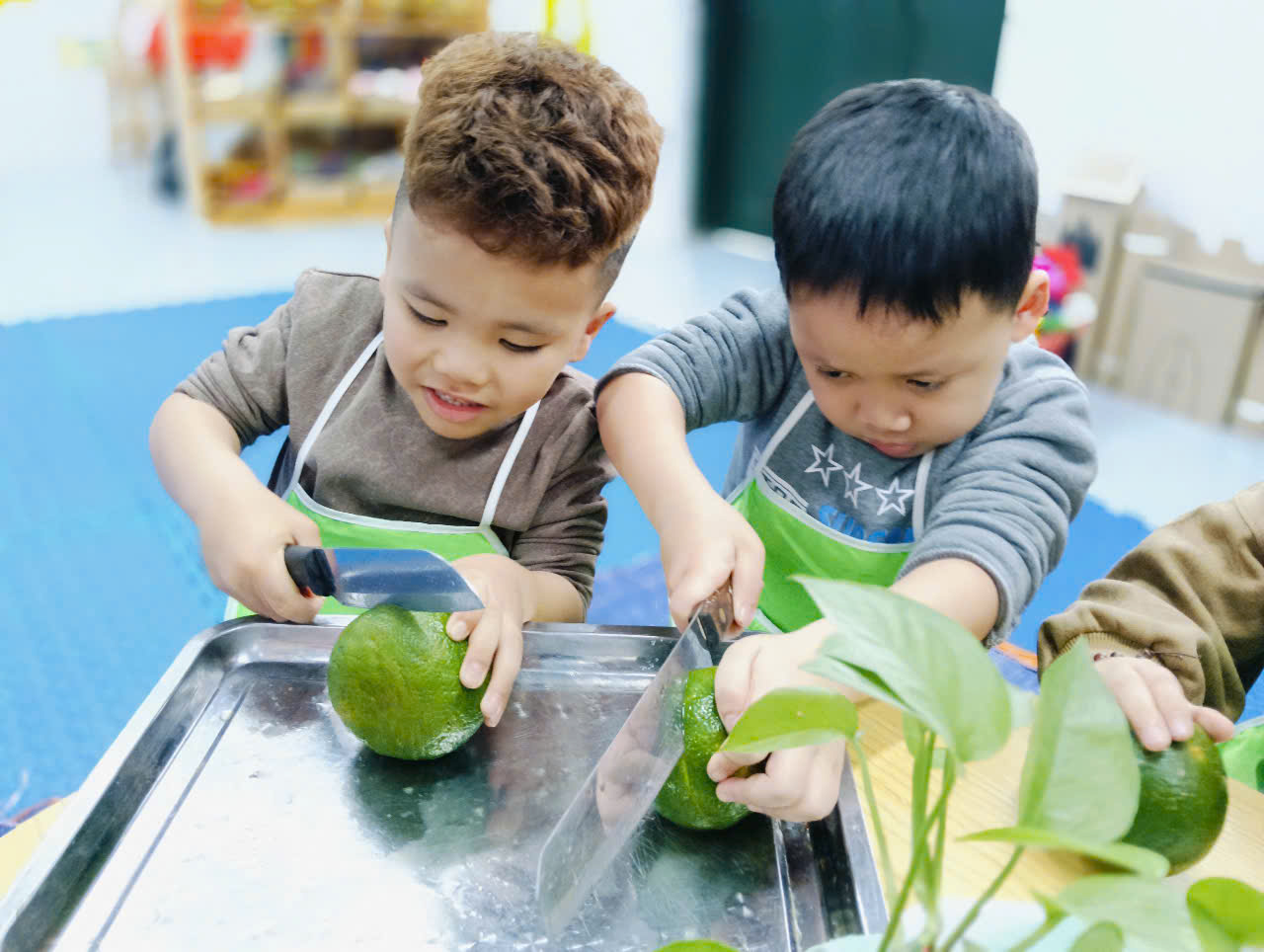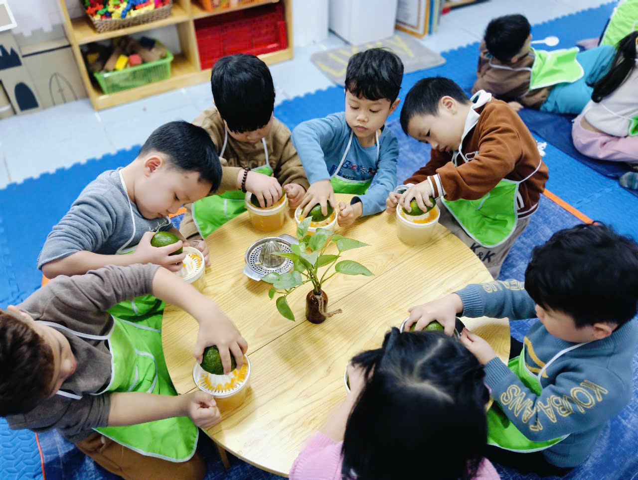 🌻 Trẻ được cô hướng dẫn cụ thể từng kỹ năng cầm, xoay để vắt cam sao cho ra hết nước trong miếng cam và cùng thưởng thức cốc nước cam thơm ngon bổ dưỡng.