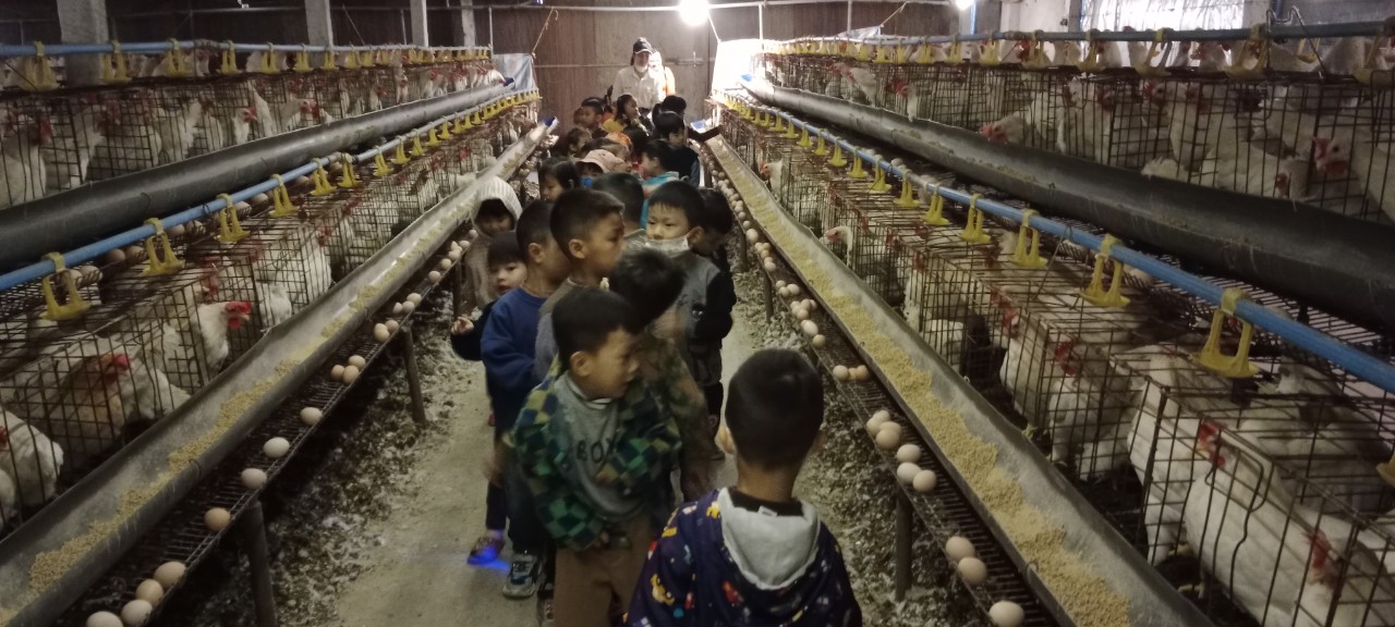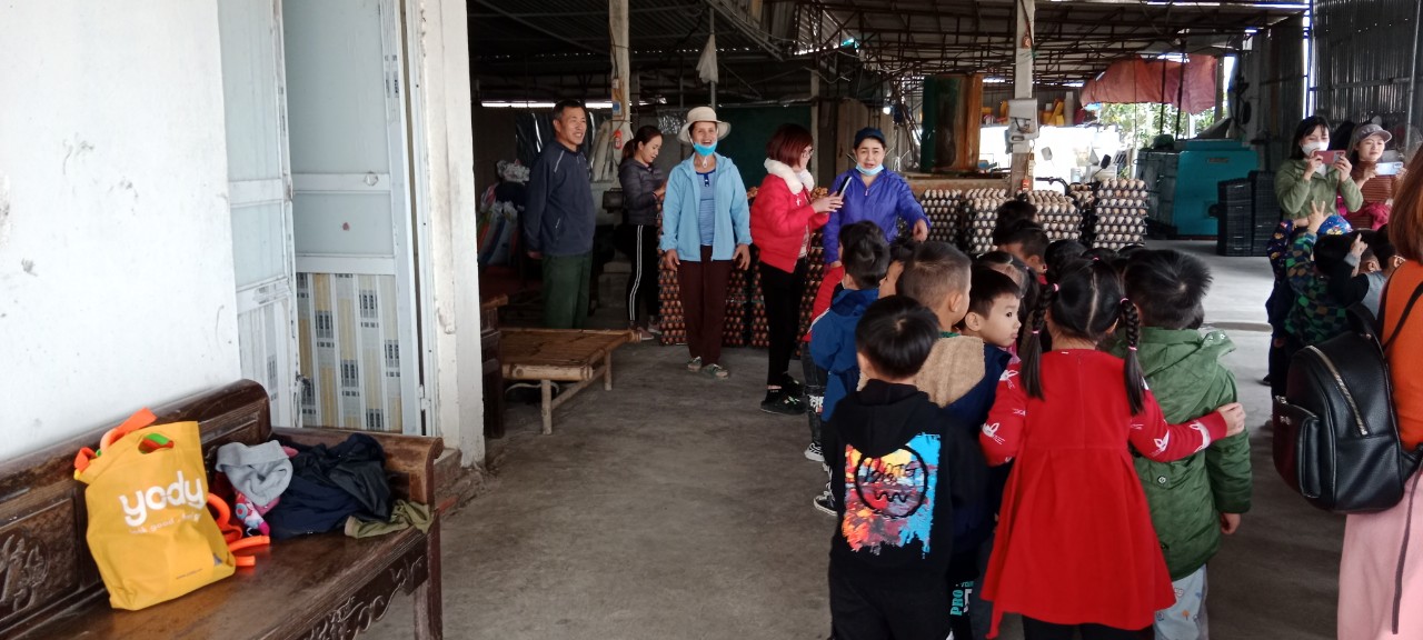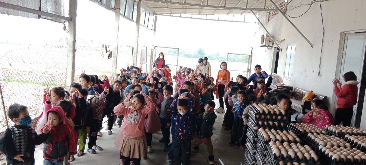 Đến thăm trang trại các con được anh Lê Hữu Giang giới thiệu về trang trại với hàng ngàn con gà, trẻ được quan sát các con gà, biết được đặc điểm và một số thức ăn của con gà, quan sát gà đẻ trứng, trẻ được cho gà ăn và còn tham gia nhặt trứng dưới sự hướng dẫn và giúp đỡ của các cô giáo.