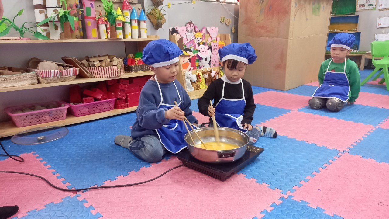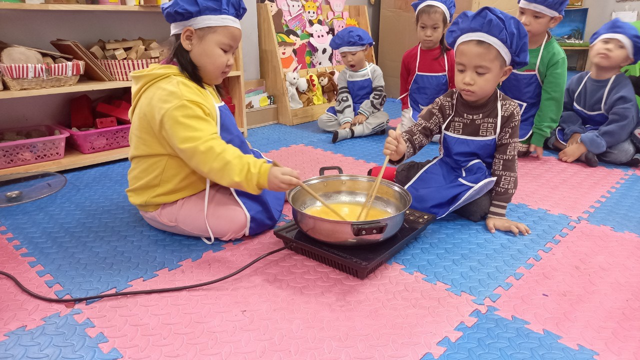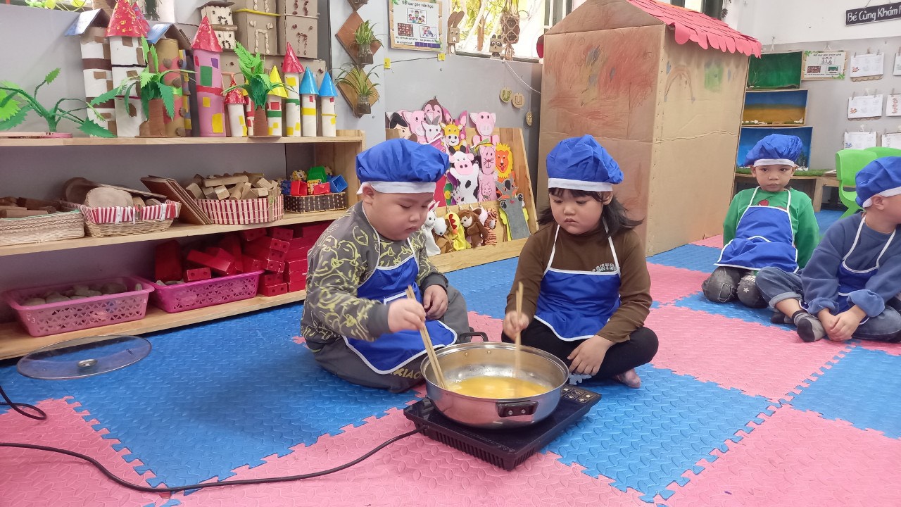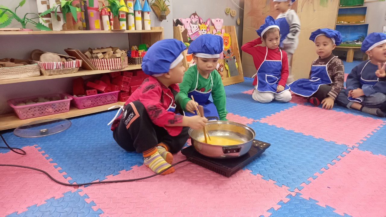 MỘT SỐ HÌNH ẢNH CỦA CÁC CON LỚP B2- TRẺ ĐƯỢC TRẢI NGHIỆM LÀM MÓN ĂN TỪ TRỨNG.