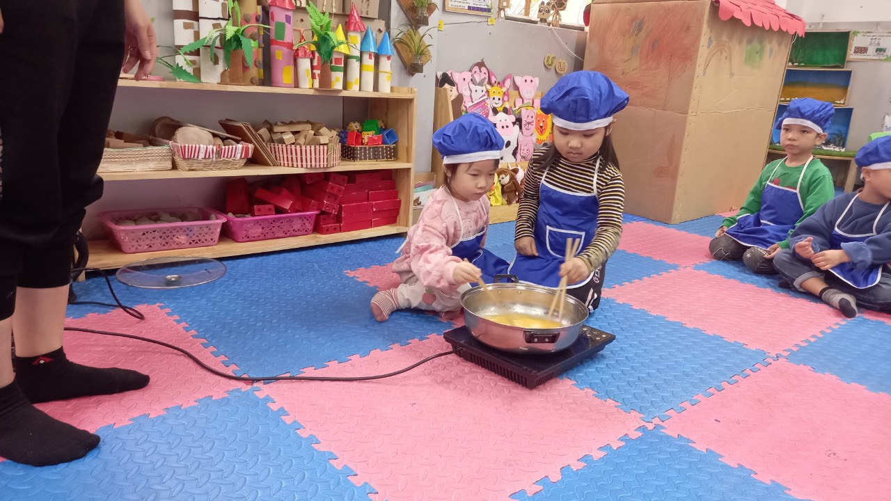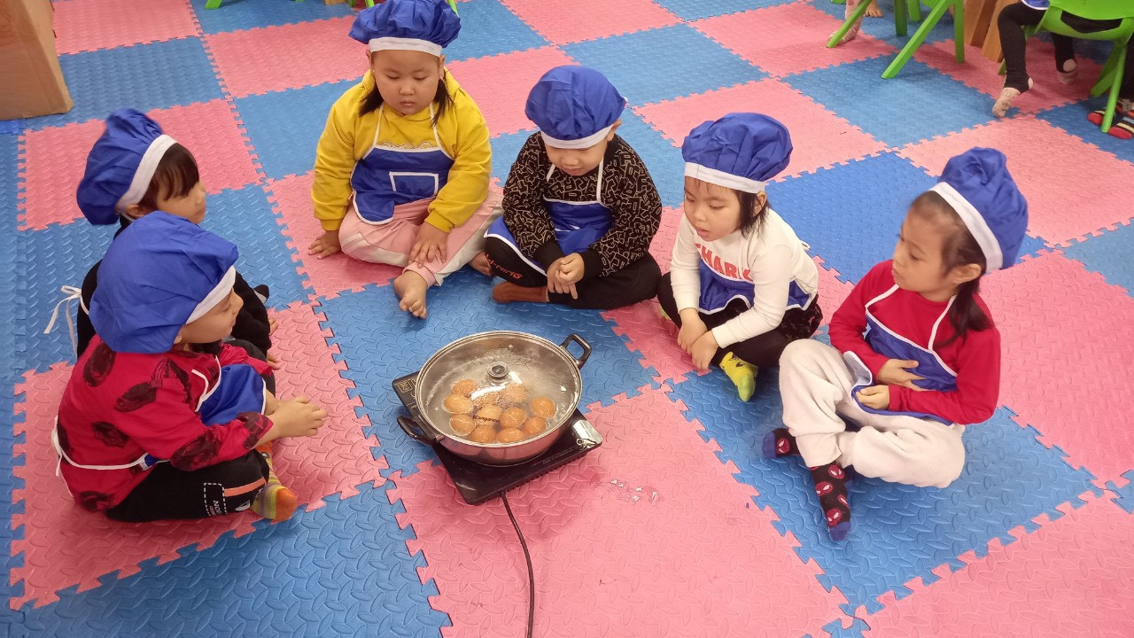 Kết thúc chuyến thăm trang trại gà, các cô giáo mua trứng gà về để cho trẻ khám phá, trải nghiệm , chế biến món ăn từ trứng.