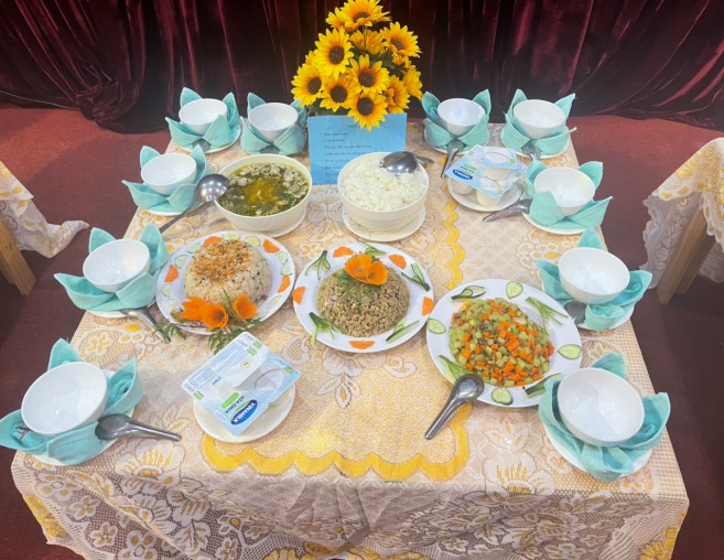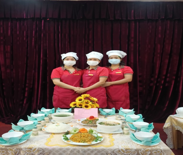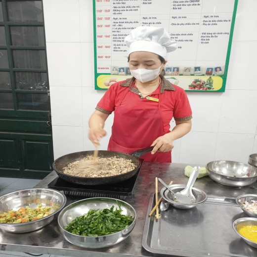 Các đồng chí nhân viên nuôi dưỡng đã xây dựng thực đơn phong phú cho các bé ở lứa tuổi mẫu giáo và nhà trẻ, sử dụng các nguyên liệu tươi ngon, đảm bảo an toàn thực phẩm, phù hợp theo mùa. Với niềm đam mê nấu ăn của mình cùng sự chuẩn bị chu đáo các nhân viên đã chế biến những món ăn giàu dinh dưỡng, hấp dẫn, đảm bảo cân đối giữa lượng và chất, cung cấp đầy đủ năng lượng cho bé trong một ngày hoạt động, giúp các bé ăn ngon miệng, ăn hết suất.