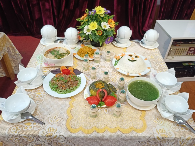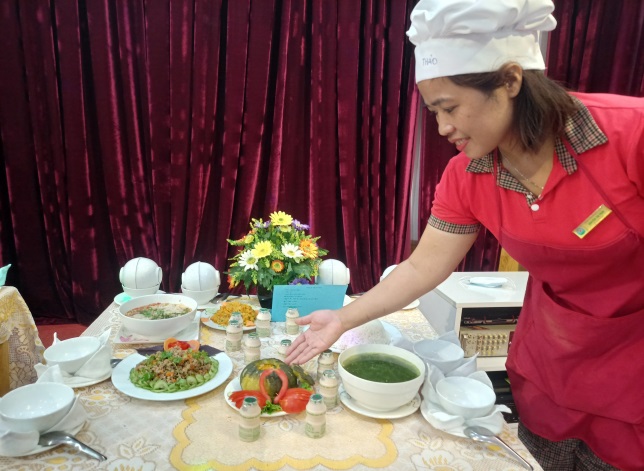Với sự tỉ mỉ, trau chuốt trong từng món ăn, các đồng chí nhân viên nuôi dưỡng trường mầm non Hồng Dương còn để lại ấn tượng cho Ban giám khảo và các bạn đồng nghiệp về cách bày biện, trang trí các món ăn cho trẻ: thu hút, hấp dẫn, kích thích trẻ trong bữa ăn.