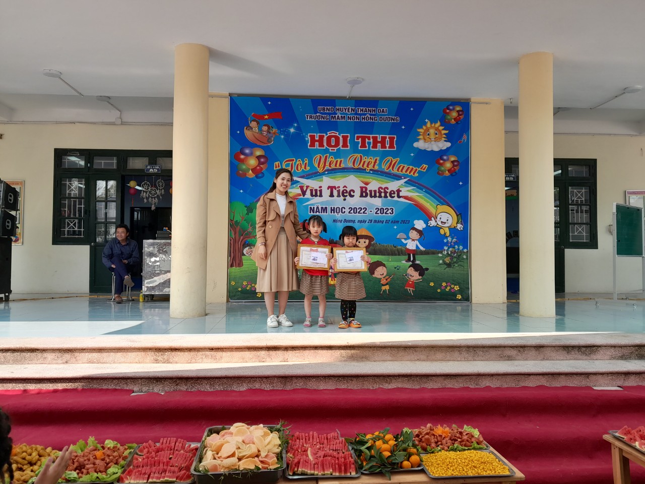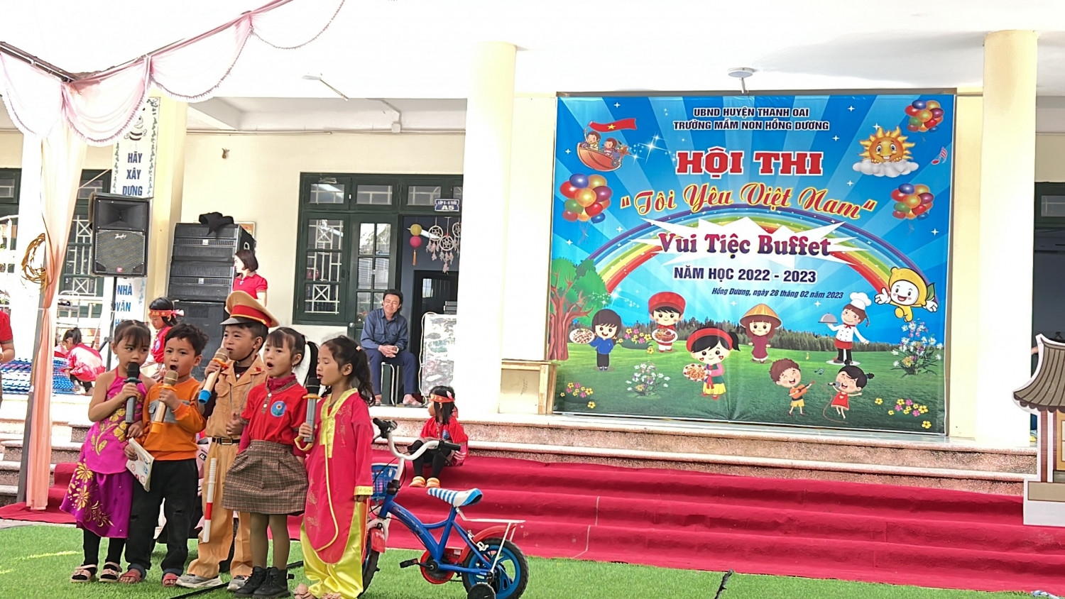 Thực hiện Kế hoạch thực hiện nhiệm vụ năm học 2022-2023. Hôm nay ngày 28/2/2023 trường Mầm non Hồng Dương kết hợp với hội phụ huynh học sinh tổ chức Hội thi " Tôi yêu Việt Nam" và tiệc buffet cho các con. Hội thi " Tôi yêu Việt Nam " đối với các bé lớp mẫu giáo 4 tuổi và 5 tuổi. Tại cuộc thi các bé tham gia 3 nội dung thi đó là: