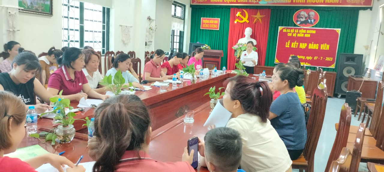 Công tác phát triển Đảng viên luôn được chi bộ chú trọng, hàng năm chi bộ mầm non kết nạp được 2 đến 4 đảng viên. Hôm nay, ngày 07/07/2023 chi bộ mầm non Hồng Dương tổ chức kết nạp cho 2 đ/c: Đ/c Nguyễn Thị Yến và đ/c Nguyễn Thị Hòa.