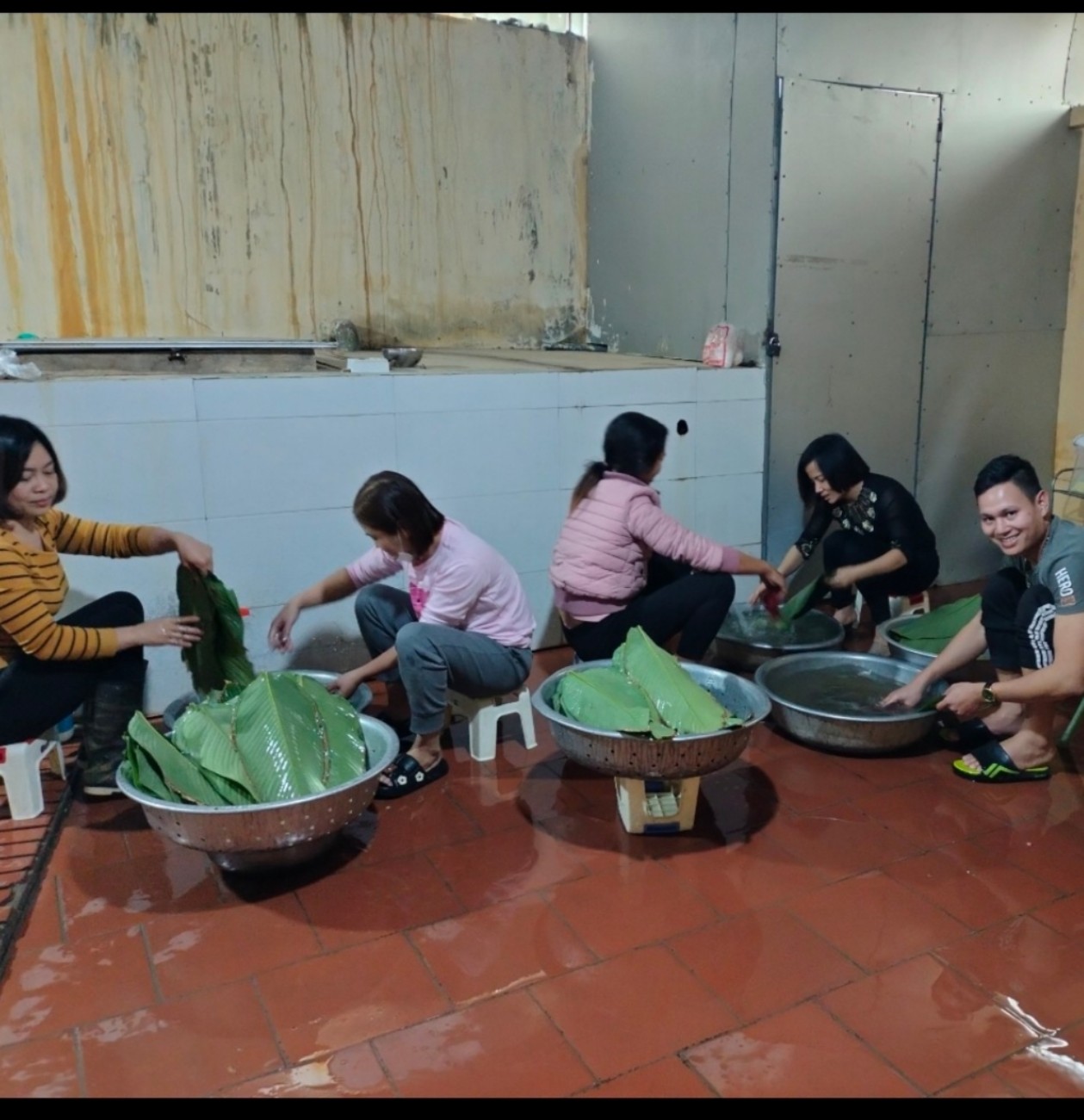 Bằng sự phối hợp tốt của các cô giáo với các bậc phụ huynh, được sự nhất trí của BGH nhà trường, Ban phụ huynh các lớp đã họp và thống nhất với giáo viên chủ nhiệm lớp, các bậc phụ huynh sẽ ủng hộ các nguyên liệu để gói bánh chưng cho các con như: Gạo, đậu xanh, thịt lợn…Các bậc phụ huynh phân công nhau để giúp đỡ cho lớp. Chiều ngày hôm trước các bậc phụ huynh đã đến giúp các cô để rửa lá rong: