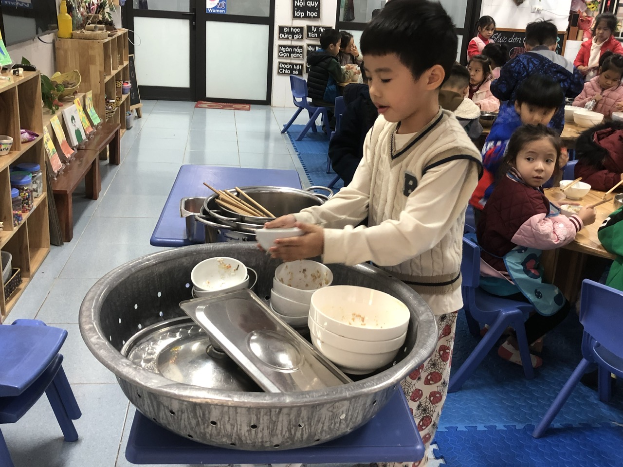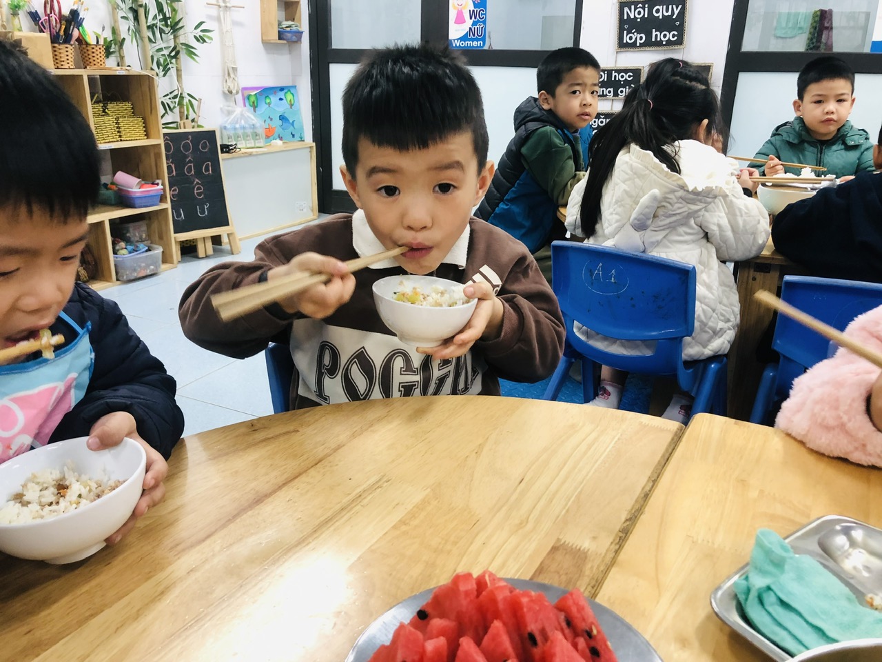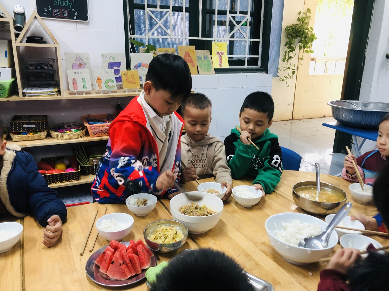 👉Bữa ăn gia đình: Giúp trẻ cảm nhân được không khí ấm cúng như gia đình nhỏ của trẻ và còn mang đậm nét văn hóa của người Việt. Rèn kỹ năng sử dụng một số dụng cụ trong gia đình : Bát sứ, đũa, thìa….Qua đó, trẻ biết bảo quản đồ dùng dễ vỡ, biết chuẩn bị bàn ăn, biết ăn uống văn minh lịch sự. Mời các bậc PH cùng theo dõi giờ ăn của các bé lớp 5 tuổi A4 nhé . 🥰🥰🥰