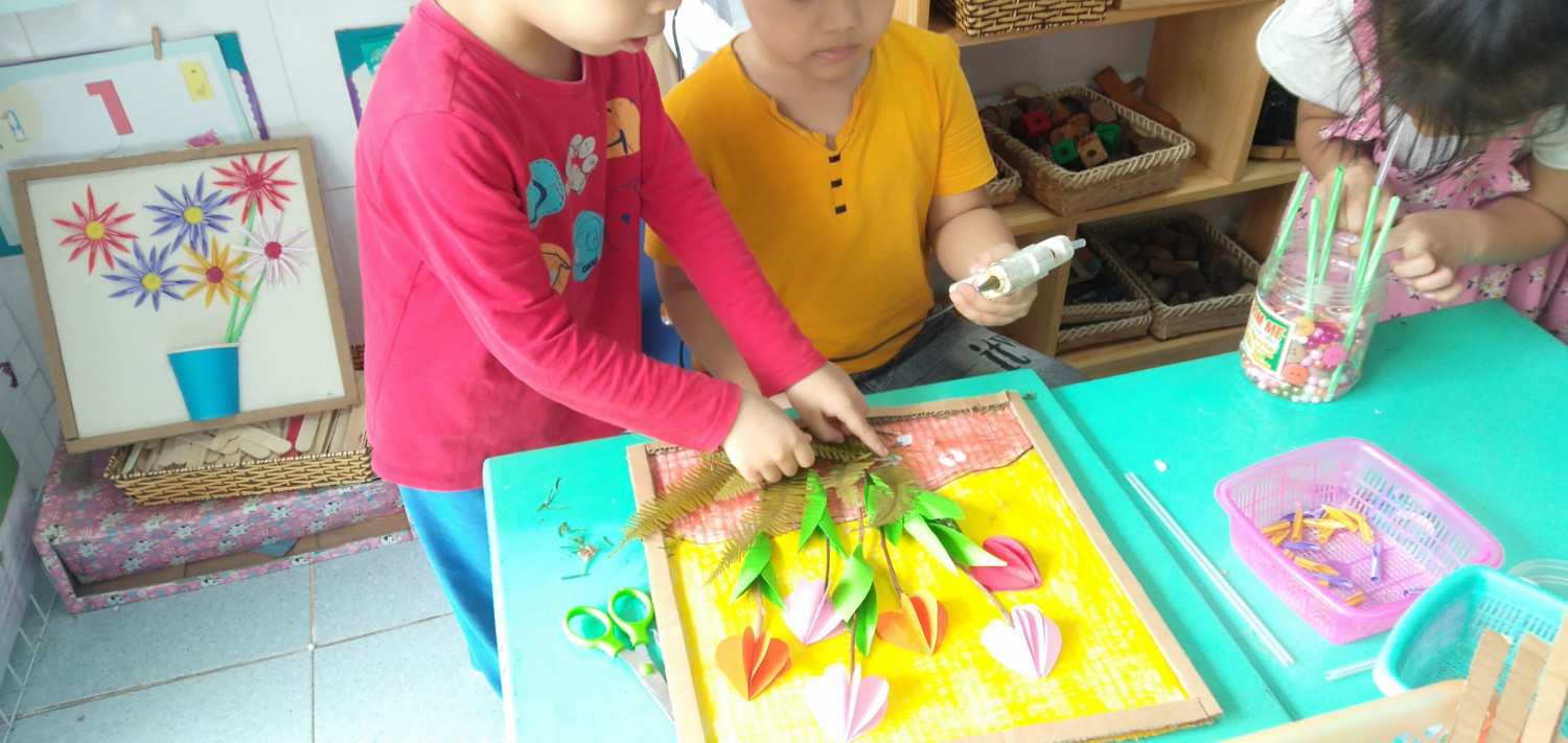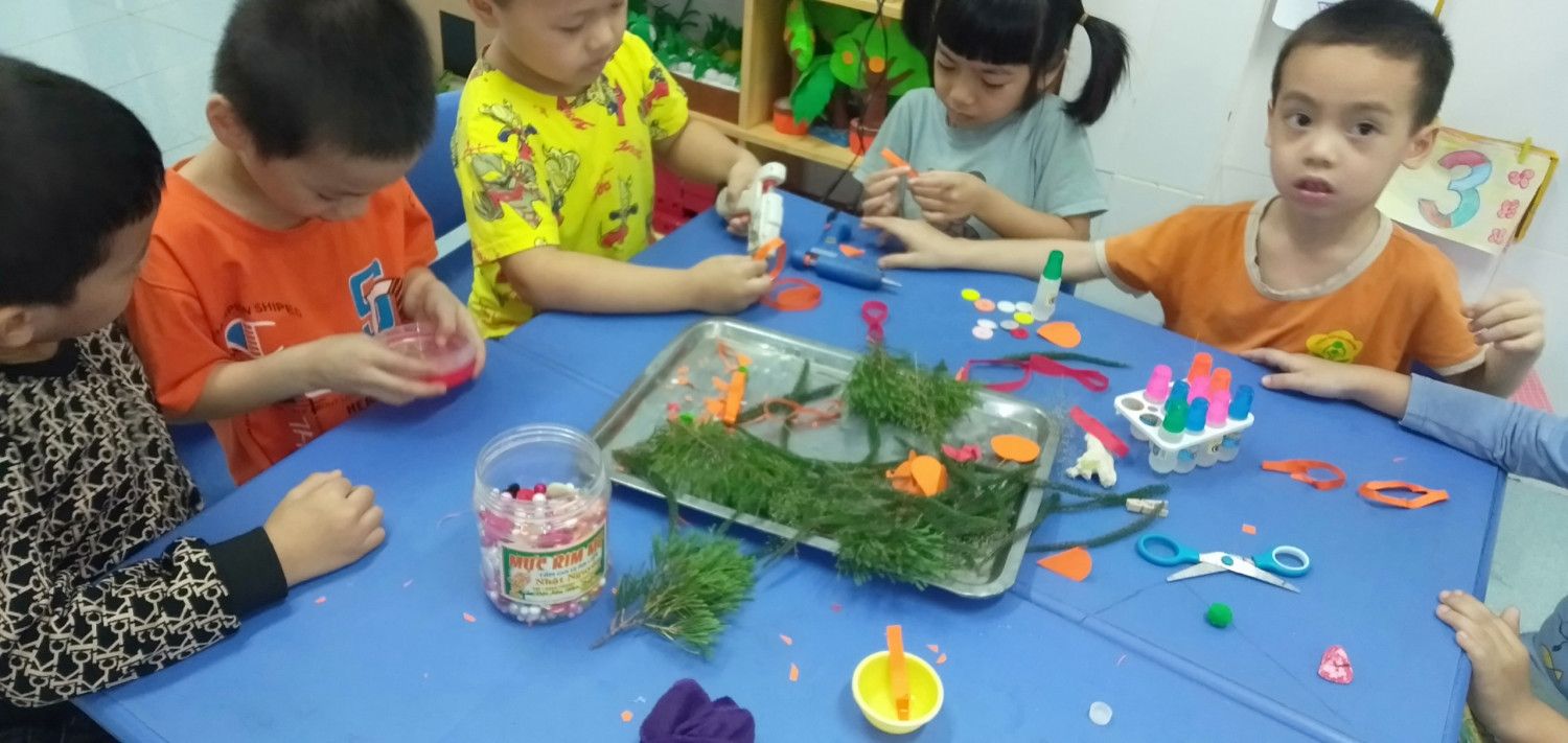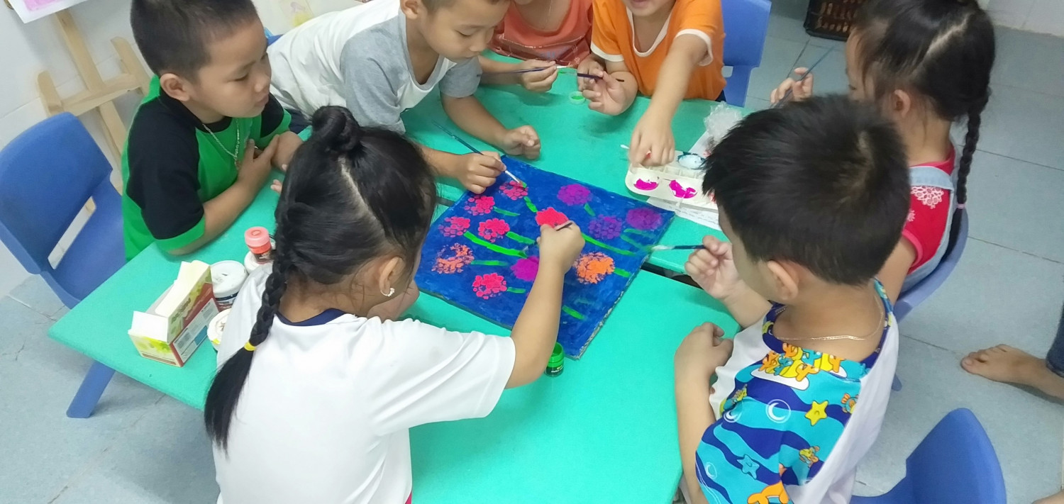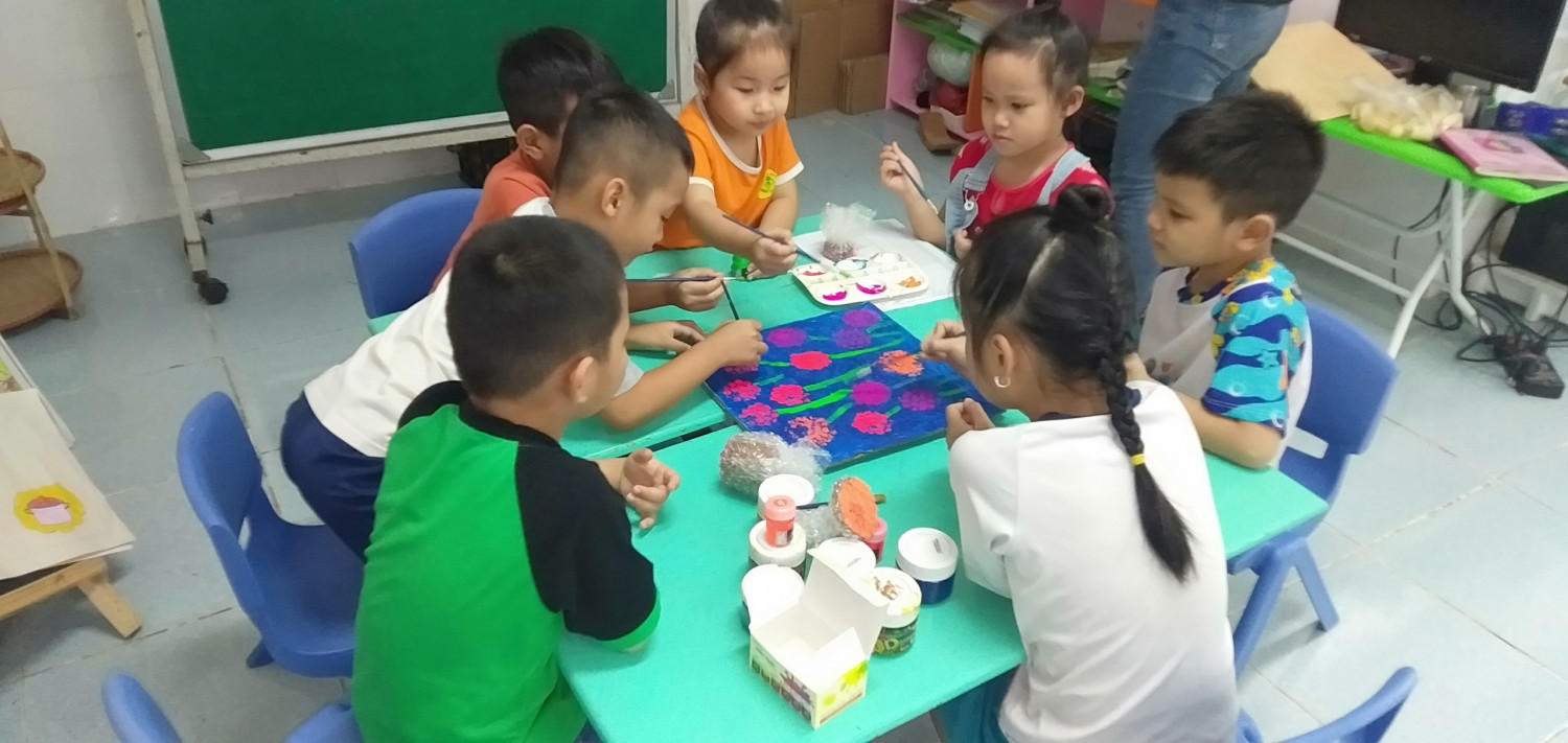 Trẻ lớp 5 tuổi A3 vẽ tranh chúc mừng ngày Nhà giáo Việt Nam