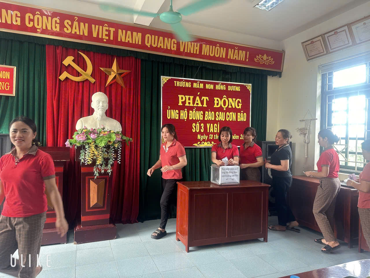 💐💐Với mong muốn có thể đóng góp một phần nhỏ bé giúp người dân vùng lũ miền Bắc bớt khó khăn hơn, Công đoàn Trường Mầm non Hồng Dương đã tổ chức phát động quyên góp ủng hộ đồng bào miền Bắc. Mỗi cán bộ, giáo viên, nhân viên với tinh thần “tương thân tương ái”, “lá lành đùm lá rách”, phát huy truyền thống nghĩa tình chung sức cùng đồng bào các khu vực bị ảnh hưởng bởi mưa lũ sớm khắc phục hậu quả, ổn định đời sống, khôi phục sản xuất.