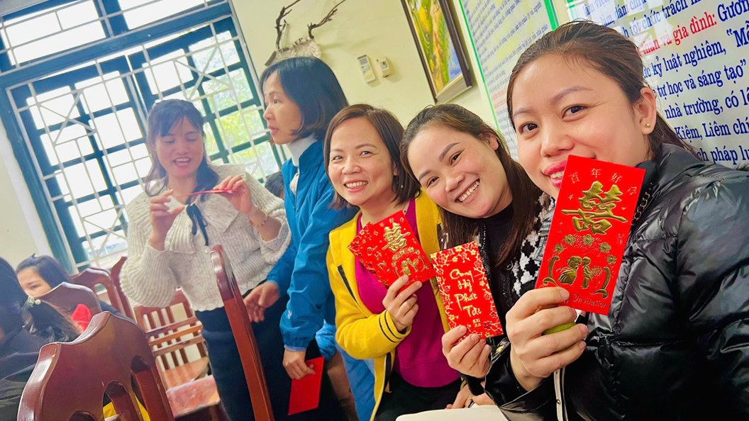🎂 Thay mặt BGH, đ/c Nguyễn Thị Bích Hòa- Bí thư Chi Bộ - Hiệu trưởng nhà trường đã gửi lời chúc mừng năm mới đến toàn thể CBGV, NV trong nhà trường và mong muốn tập thể sư phạm nhà trường sẽ tiếp tục phát huy sức mạnh đoàn kết, chung sức, phấn đấu thực hiện tốt các nhiệm vụ, góp phần phát triển nhà trường ngày càng vững mạnh! 🥰🥰❤️Không khí vui xuân tưng bừng, cùng những chiếc phong bao lì xì đáng yêu đã ghi lại những khoảnh khắc tuyệt vời ngày đầu xuân tới lớp của các bé. 🍒🍰🧁Bữa tiệc nhẹ đầu xuân ngọt ngào, ấm áp cùng những lời chúc mừng năm mới vui tươi, rộn rã hi vọng một năm mới với thật nhiều niềm vui, thành công và hạnh phúc sẽ đến với cô và trò trường MN Hồng Dương thân yêu!