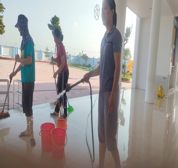 Trường Mầm non Hồng Dương luôn đảm bảo vệ sinh môi trường trong và ngoài lớp học sạch đẹp.