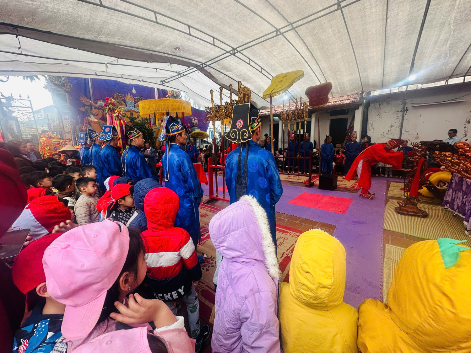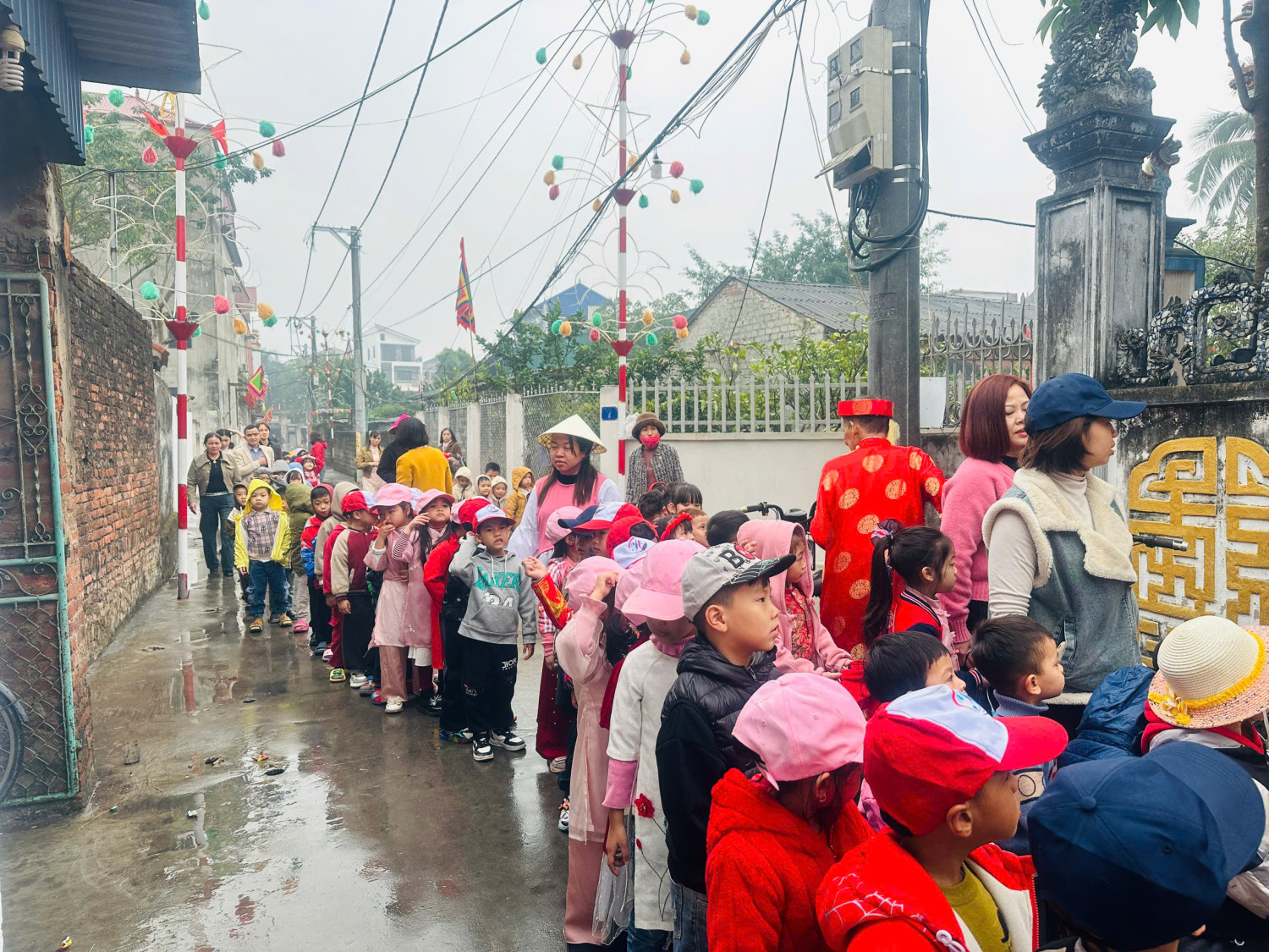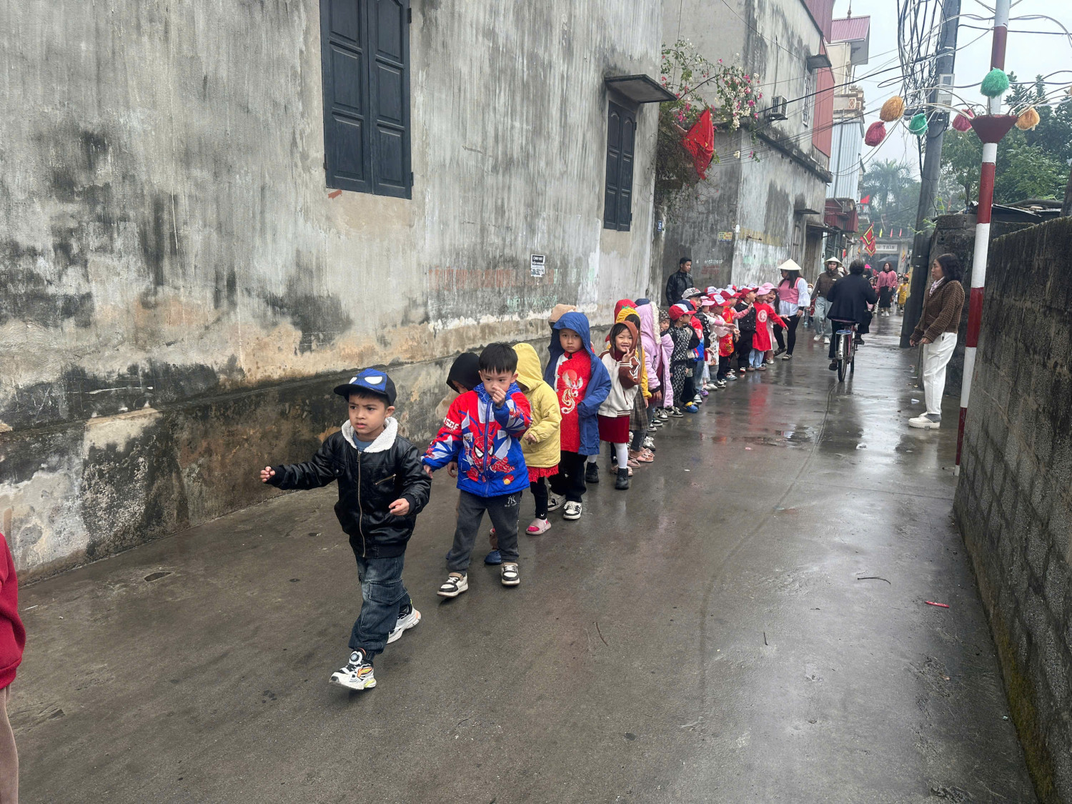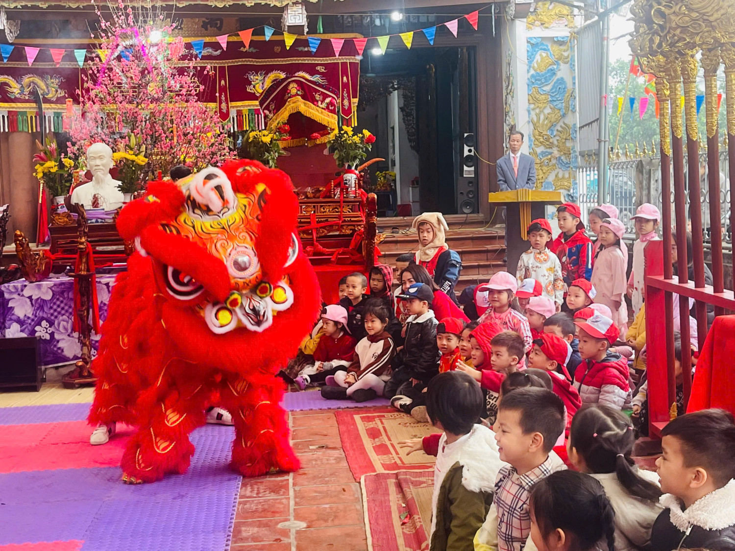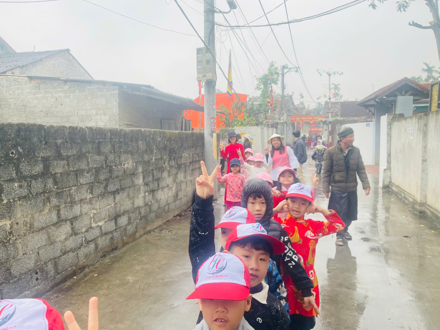 🌻 Buổi thăm quan trải nghiệm thực tế đã góp phần vào việc thực hiện hiệu quả chủ đề “Lễ Hội Mùa Xuân” mà nhà trường đã xây dựng ngay từ đầu năm học. Khi các bé được cô giáo đưa đi tham quan di tích lịch sử của Đình làng Ngô Đồng thượng vào dâng lễ thắp hương, trẻ có cơ hội được gặp gỡ các cụ cao tuổi trong đình, được nghe ông Nguyễn Hùng Ca, trưởng ban các cụ - thành viên ban tổ chức lễ hội giới thiệu về đình làng, nói chuyện với các cháu về lịch sử thời Thành Hoàng Làng từ đời xưa đến nay…